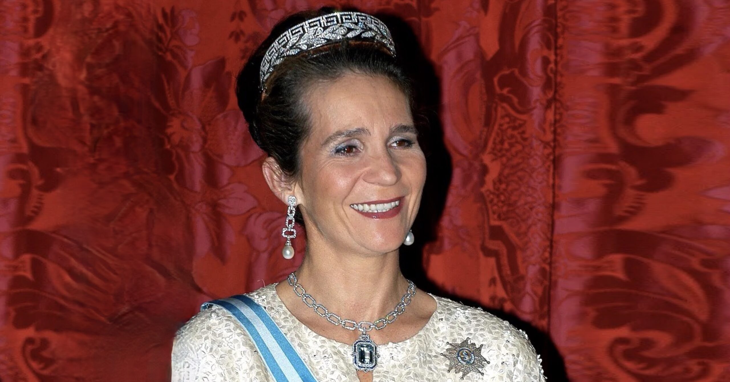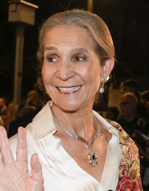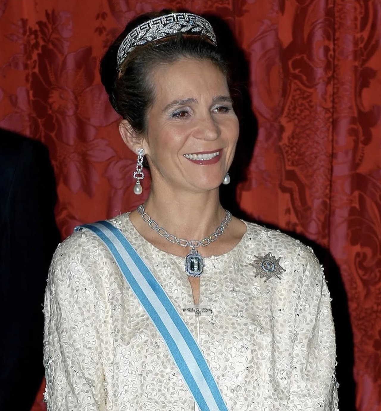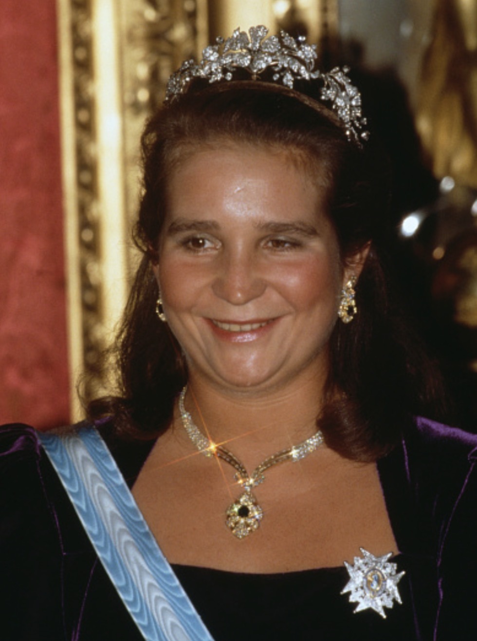 On at least one occasion, Infanta Elena further personalized the piece by suspending a large aquamarine and diamond pendant from the chain. It has been some time since we last saw this diamond necklace in public, but let’s hope it will one day make a reappearance—either on Infanta Elena herself or perhaps on a younger generation.