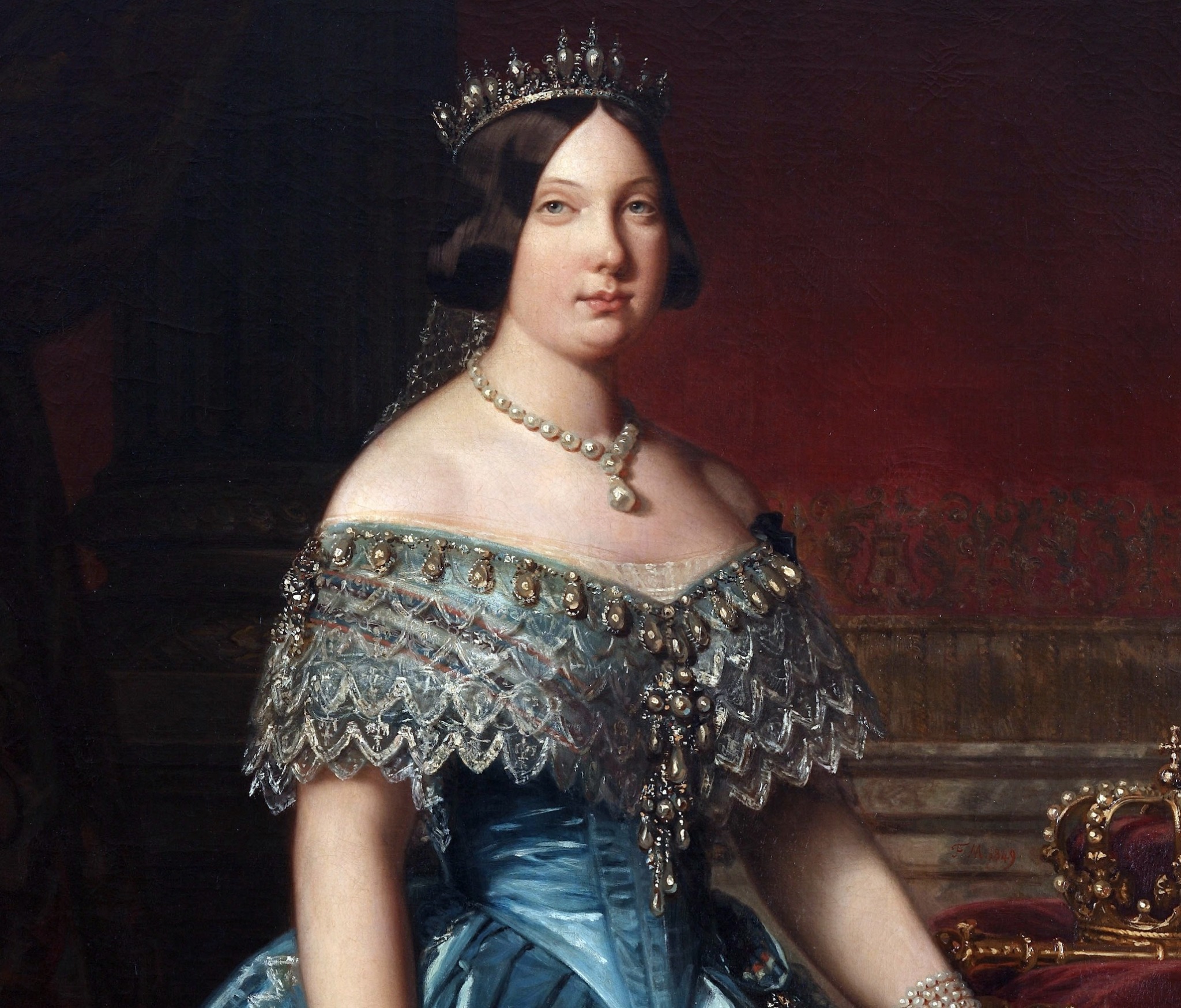 Today marks the 195th Anniversary of the birth of Queen Isabella II of Spain, who was born on this day in 1830! The eldest child of King Fernando VII and his wife and niece, Maria Cristina of Bourbon-Two Sicilies, she ascended the throne at the tender age of 3, her reign earning her the title of the “queen of sad fates” due to the political turmoil and challenges that ultimately led to her exile in Paris following the Glorious Revolution of 1868. To commemorate her birthday, we are highlighting one of her most important surviving heirlooms, the Joyas de Pasar Pearl Necklace!