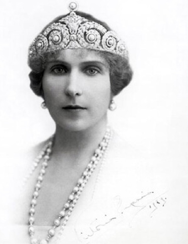 Five years later, in 1906, the pearl necklace once again served as a wedding gift. King Alfonso XIII presented his grandmother’s pearls to his bride, Princess Victoria Eugenia of Battenberg, as part of a spectacular ensemble. The necklace was given alongside a remarkable trove of jewels, including the Fleur-De-Lys Tiara, the Diamond Riviere, and a tiny Diamond Crown.