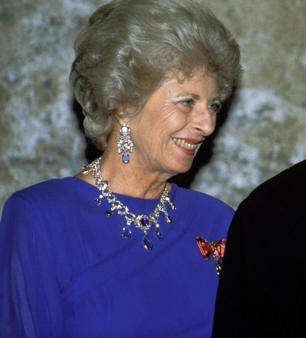 Princess Nora later wore the Diamond Earrings and Brooch at the Wedding Gala of Prince Franz Josef von Auersperg-Trautson and Archduchess Maria Constanza of Austria in 1994.