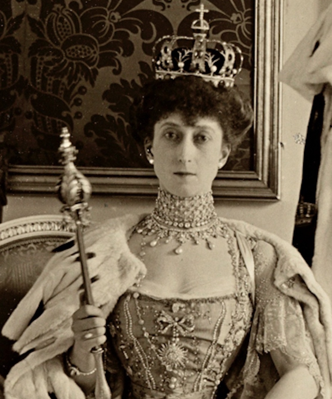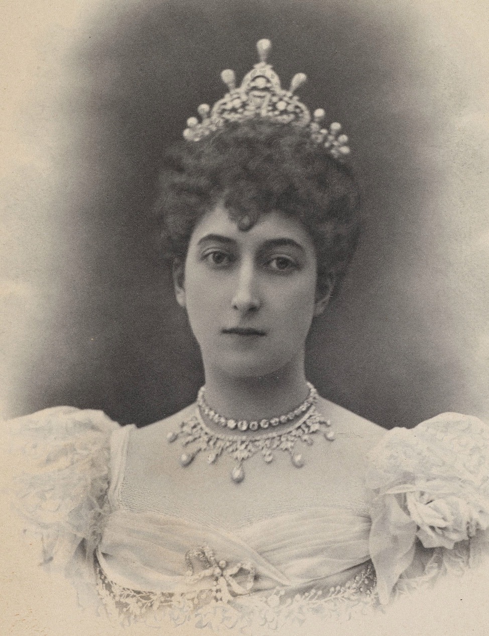 When Princess Maud of Wales married Prince Charles of Denmark in 1896, she received a plethora of glittering jewels which included a Pearl Tiara from her parents, the Vifte Tiara from the Rothschilds, a Pearl and Diamond Necklace, a Diamond Tiara from’ Lady and Gentlemen Friends’, as well as two Diamond Rivières, one from her great-great-aunt and godmother the Duchess of Inverness, and another from her parents-in-law, the future King Frederik VIlI and Queen Louise of Denmark.