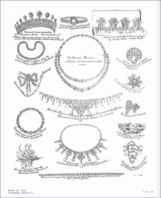 Princess Maud wore one or both Diamond Rivières on numerous occasions and for several portraits in the early years other marriage, paired with her Pearl Tiara and Diamond Tiara.