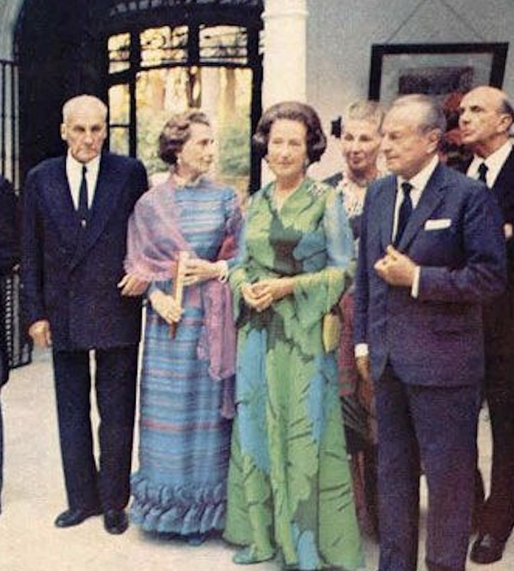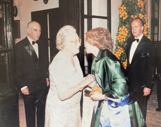 She again wore the diamond necklace with Queen Amélie’s emeralds for a debutante ball at Casa de Pilatos in Seville in 1966, and once more the following year for the wedding ball of Infanta Pilar of Spain and Luis Gómez-Acebo in Estoril.