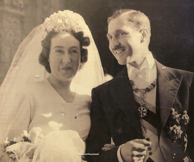 As the aunt of King Juan Carlos, Princess Esperanza wore the Diamond Kokoshnik Tiara during the marriage festivities of Don Juan Carlos and Doña Sofia in Athens in 1962, including the Wedding Ball at the Royal Palace of Athens.