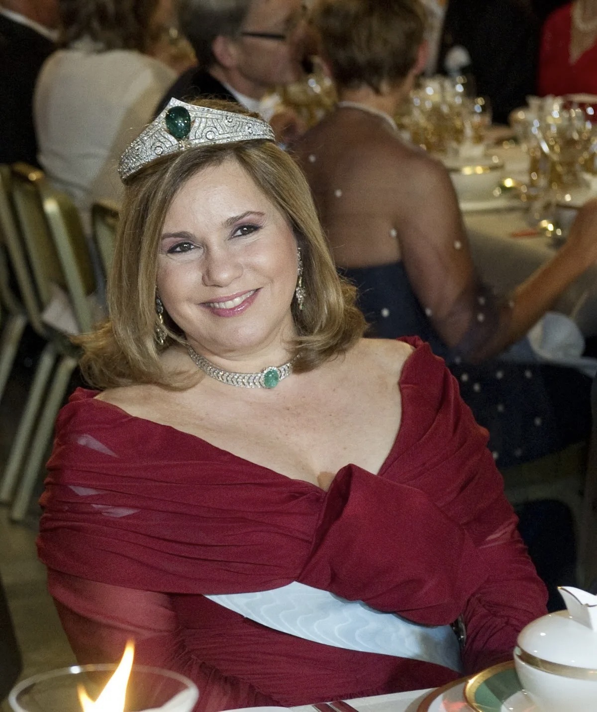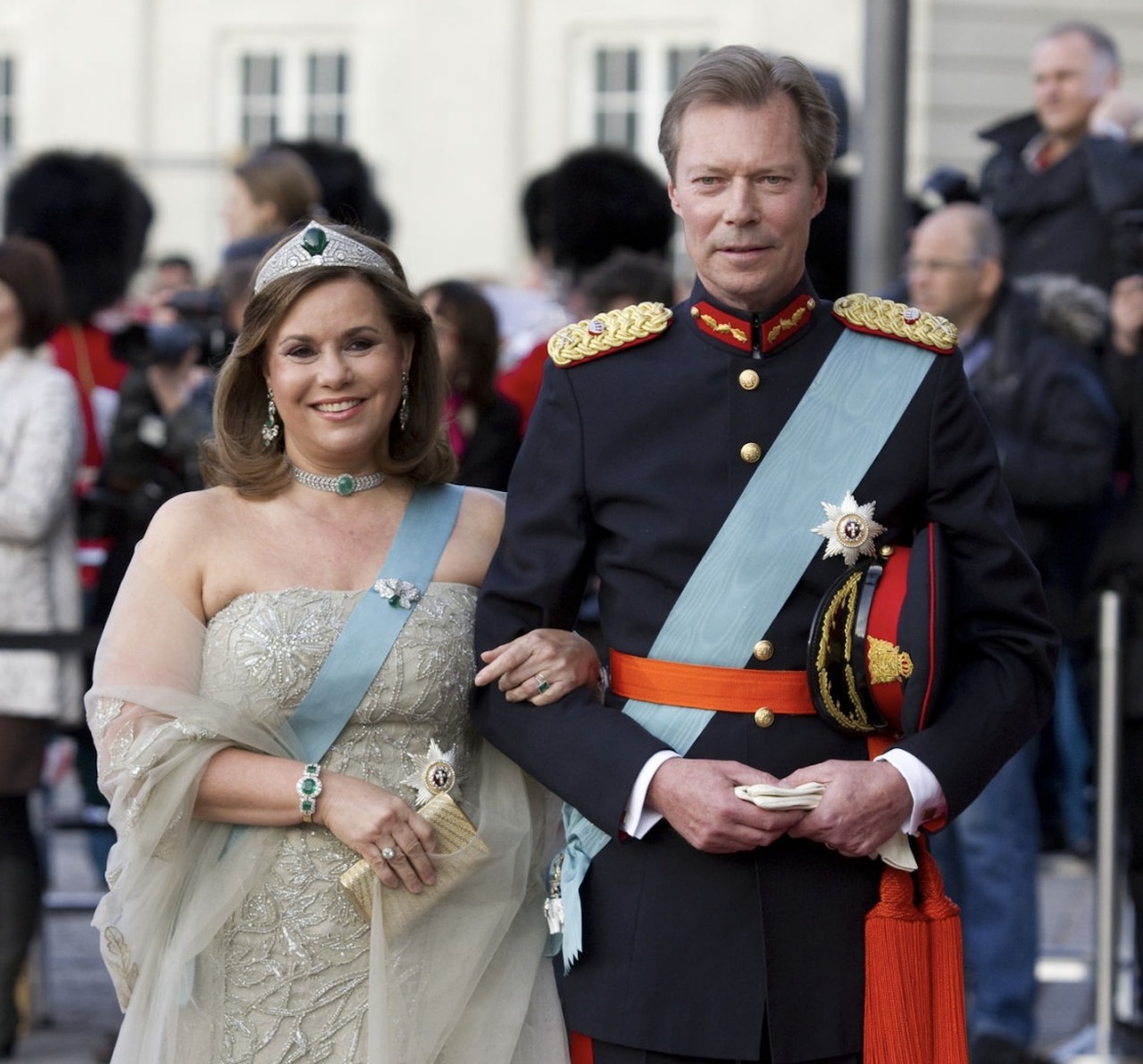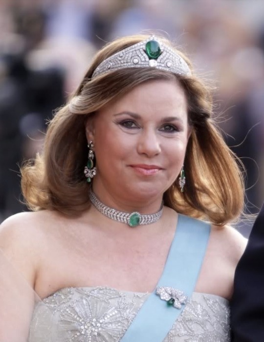 Grand Duchess Maria Teresa has notably worn Queen Astrid’s Art Deco Emerald Choker with the Chaumet Emerald Tiara and the antique Emerald Earrings, most notably for Queen Margrethe’s 70th Birthday Celebrations in 2010 and the Nobel Prize Ceremony in 2011.