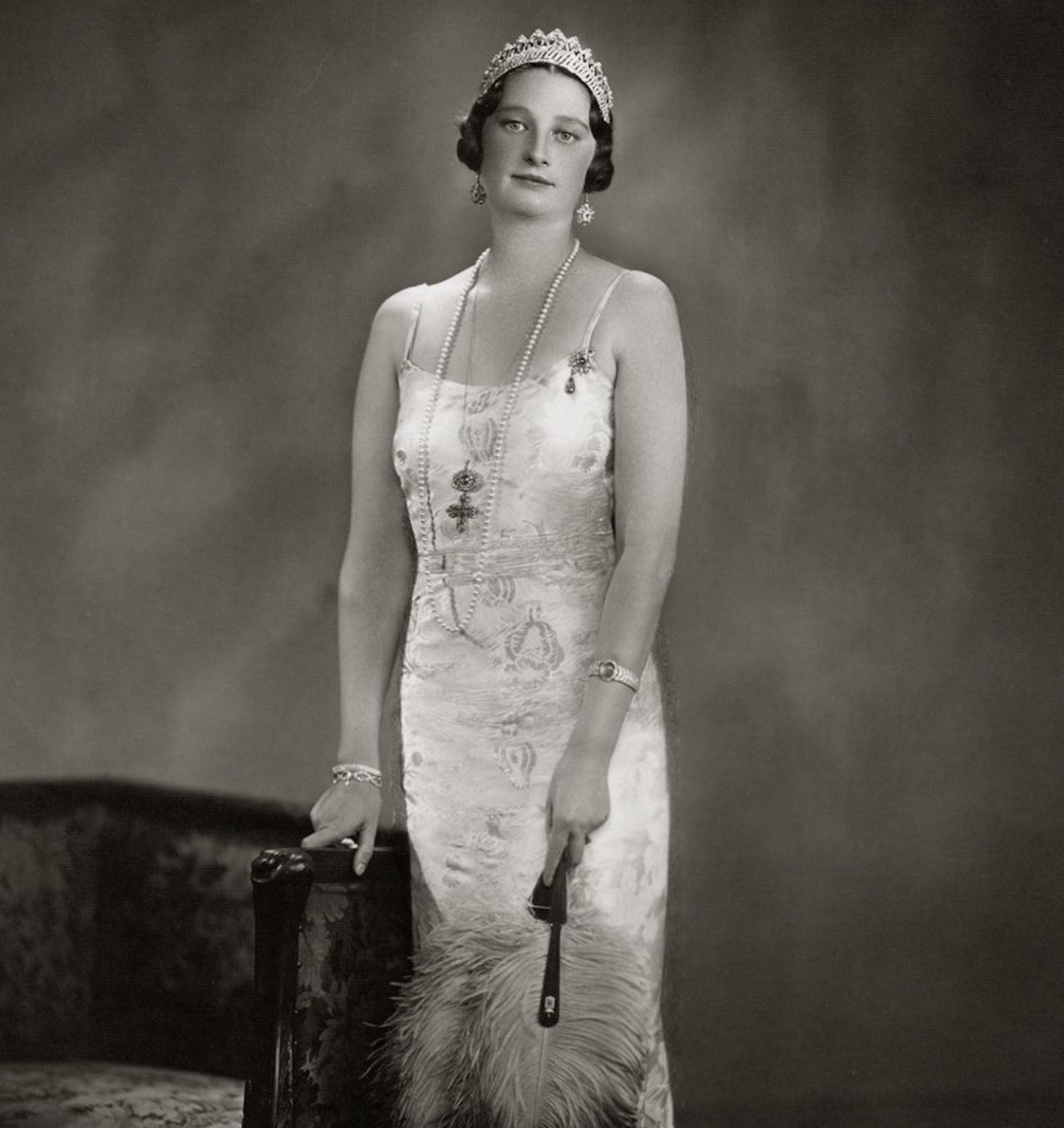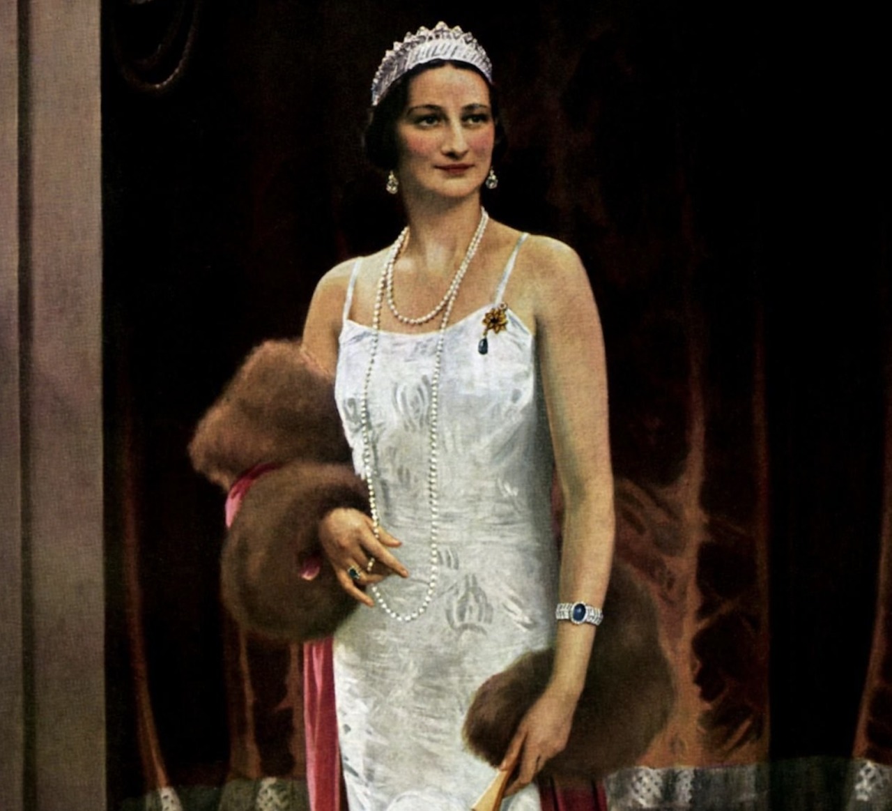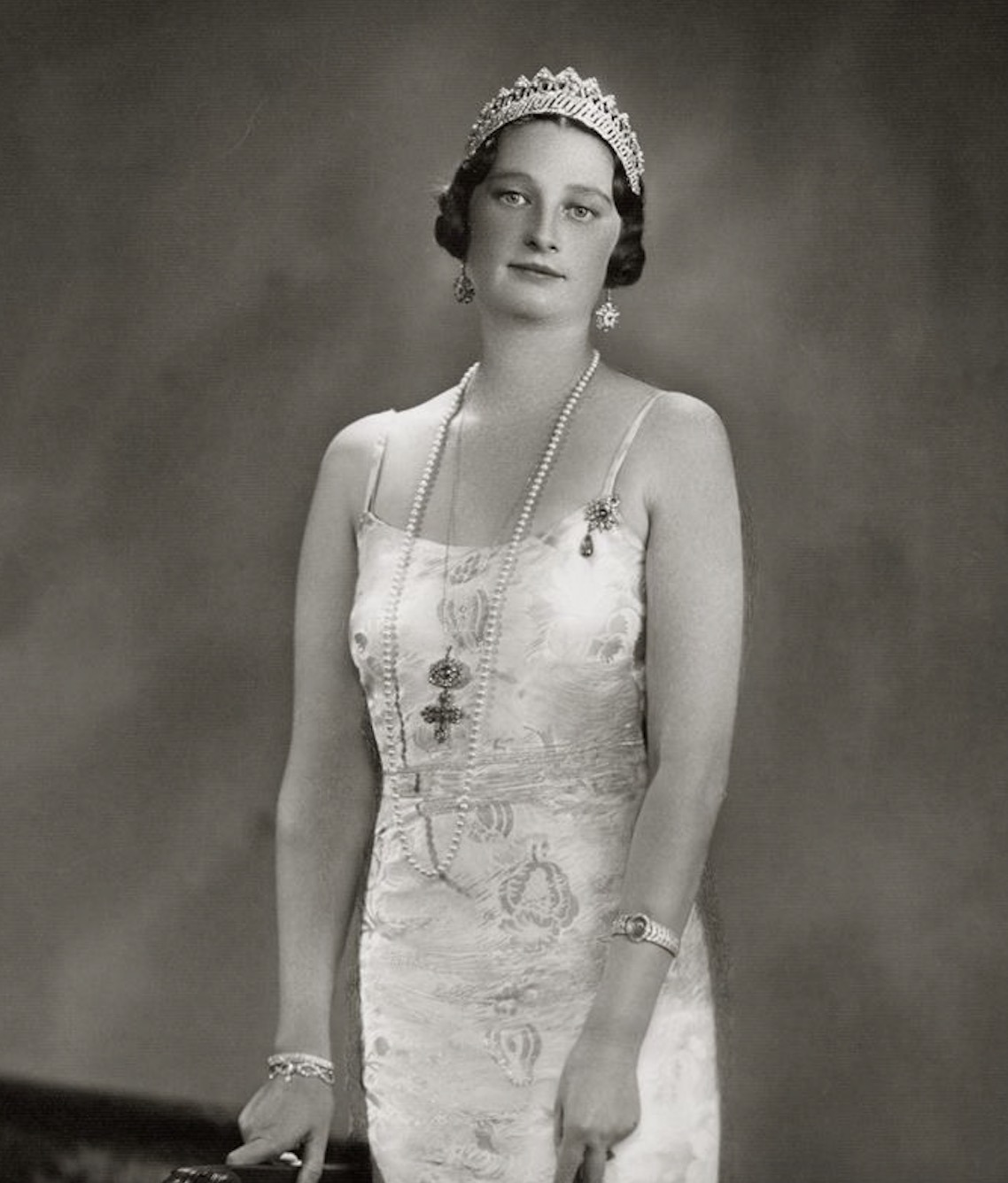 Crown Princess Astrid notably wore the Art Deco Emerald Bracelet with the bandeau of the Nine Provinces Tiara and her Napoleonic Emerald Pendants for a striking portrait taken in the late 1920s.