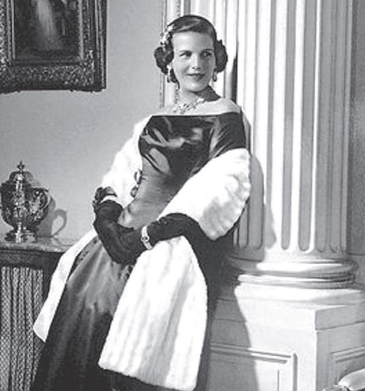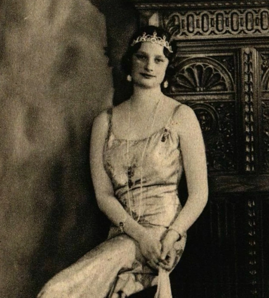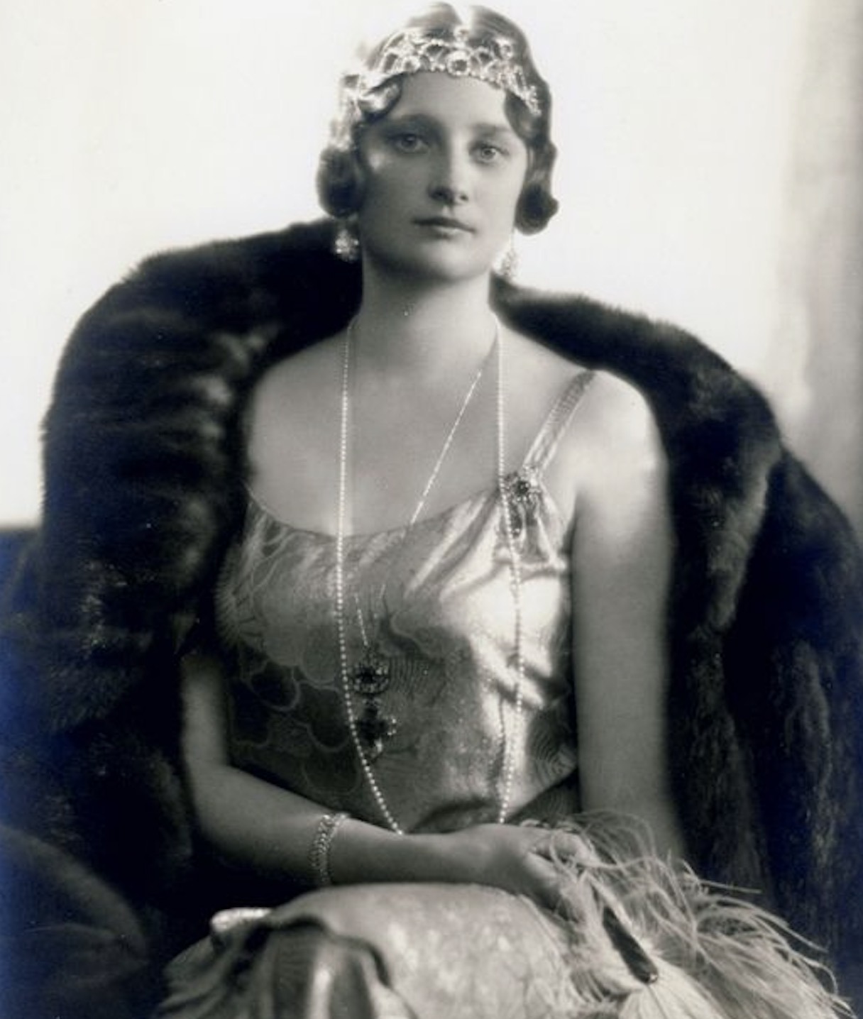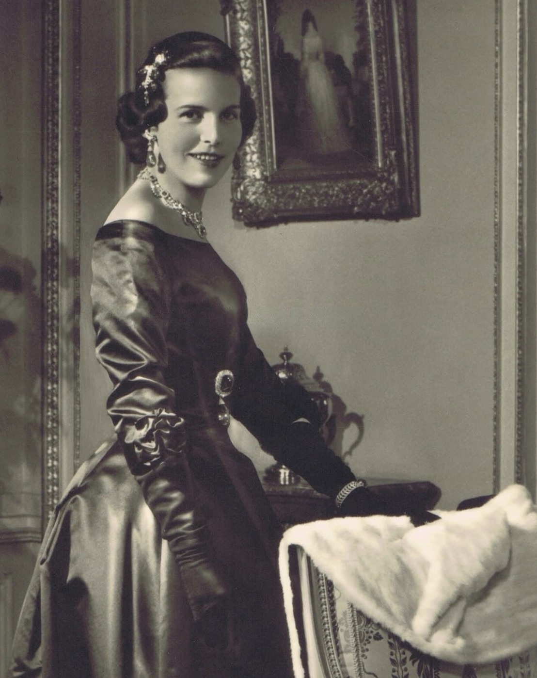Crown Princess Astrid notably wore the Art Deco Emerald Bracelet with the bandeau of the Nine Provinces Tiara and her Napoleonic Emerald Pendants for a striking portrait taken in the late 1920s.