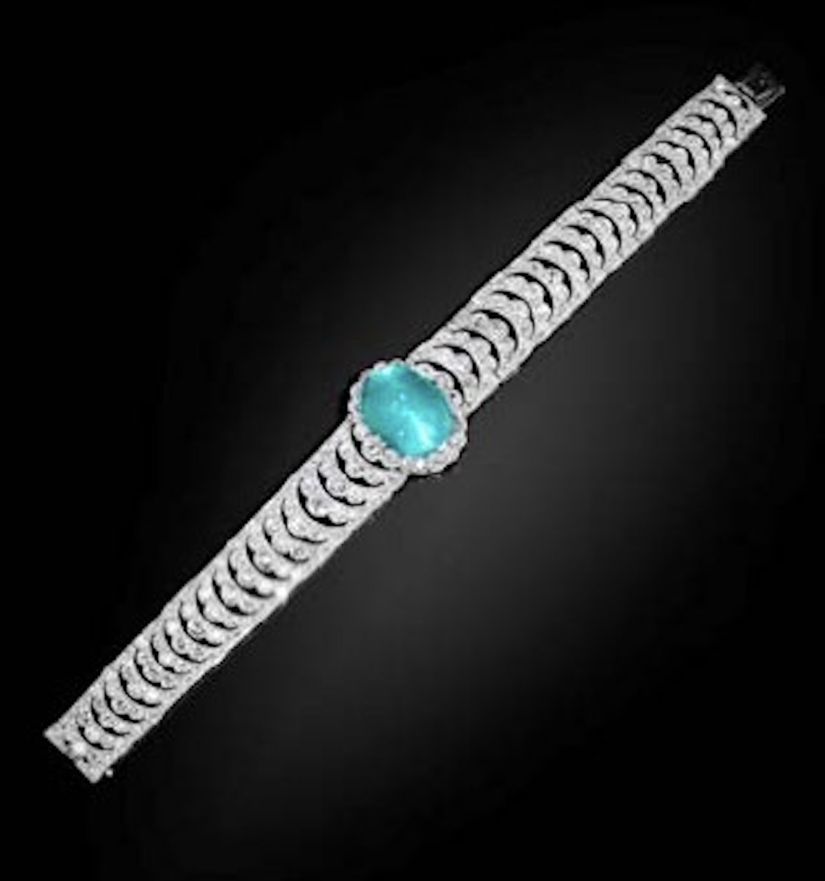 This striking Art Deco Diamond Bracelet with a large cabochon Emerald was reportedly a gift to the future Queen Astrid from her mother-in-law, Queen Elisabeth, on the birth of her first child, Princess Joséphine-Charlotte in 1927.