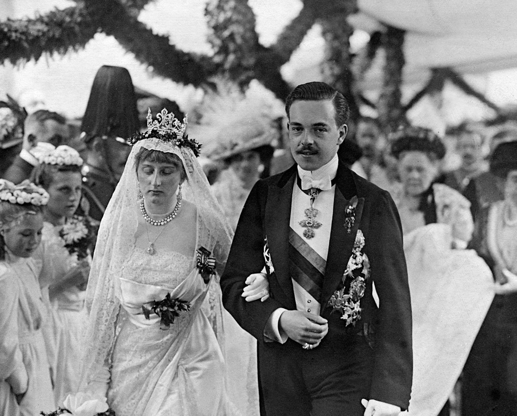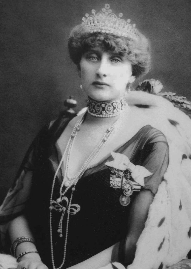 ‘Mimi,’ as Queen Augusta was affectionately known within the family, paired her Ruby Choker with a Diamond Fringe Tiara — a gift from the Portuguese monarchists in Brazil — for her first gala portraits as a married woman and de jure Queen.