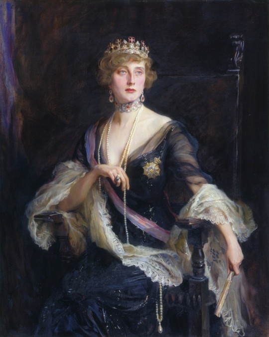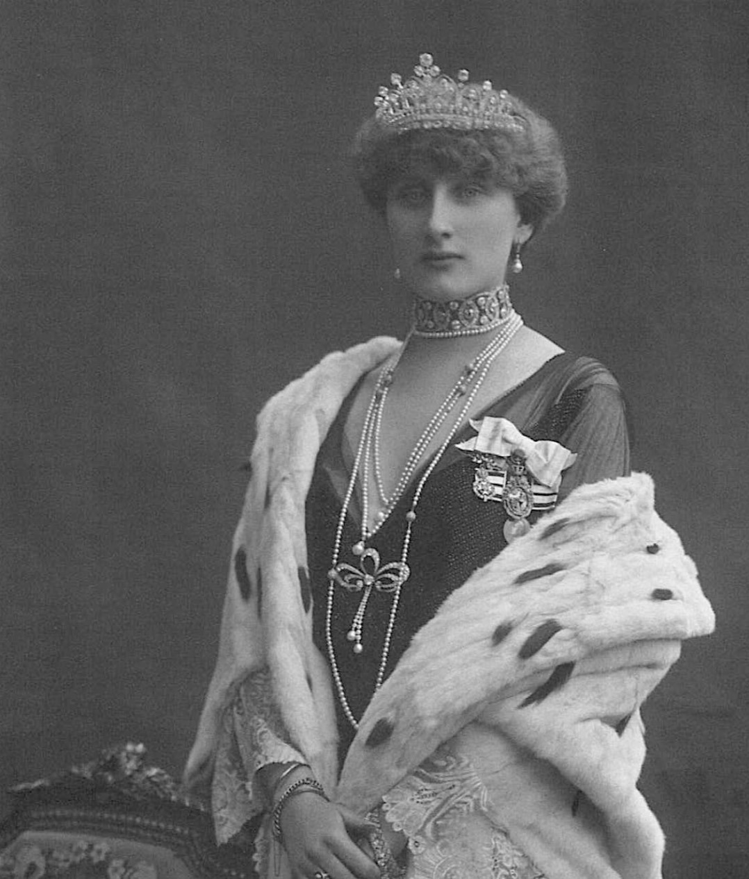 In 1915, the Queen paired the Cartier Choker with her Ruby Tiara, designed as a graduated frieze of the Cross of the Portuguese Order of Christ, for a notable portrait painted by the renowned royal portraitist Philip de László