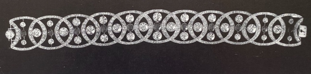 Ahead of the wedding of her son, King Manuel II, to Princess Augusta Victoria of Hohenzollern-Sigmaringen in 1913, Queen Amélie commissioned Cartier to create a diamond and ruby choker necklace. To supply the gems, the Queen contributed with two pieces from her own jewellery collection: a necklace with thirteen rubies and diamonds given to her by her late husband in 1904, and a diamond rivière bracelet set with twenty-one stones, received as a wedding gift from the Duke of Aosta in 1886.