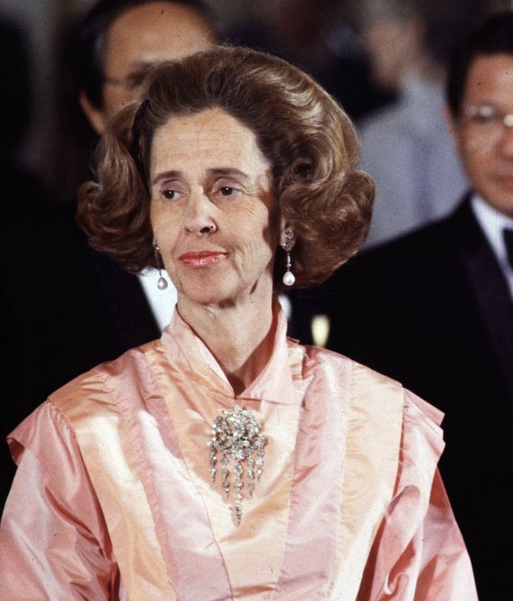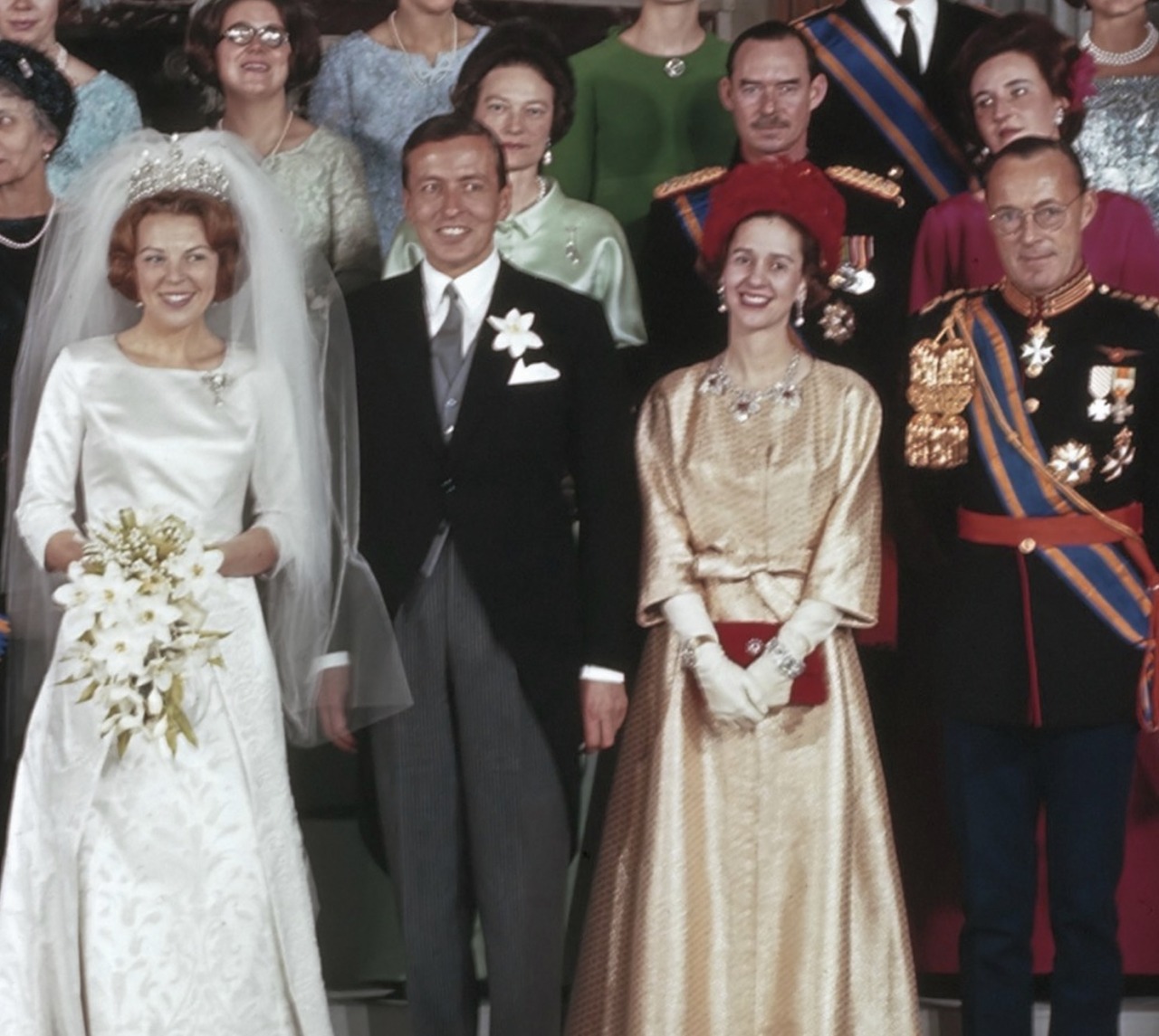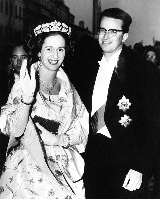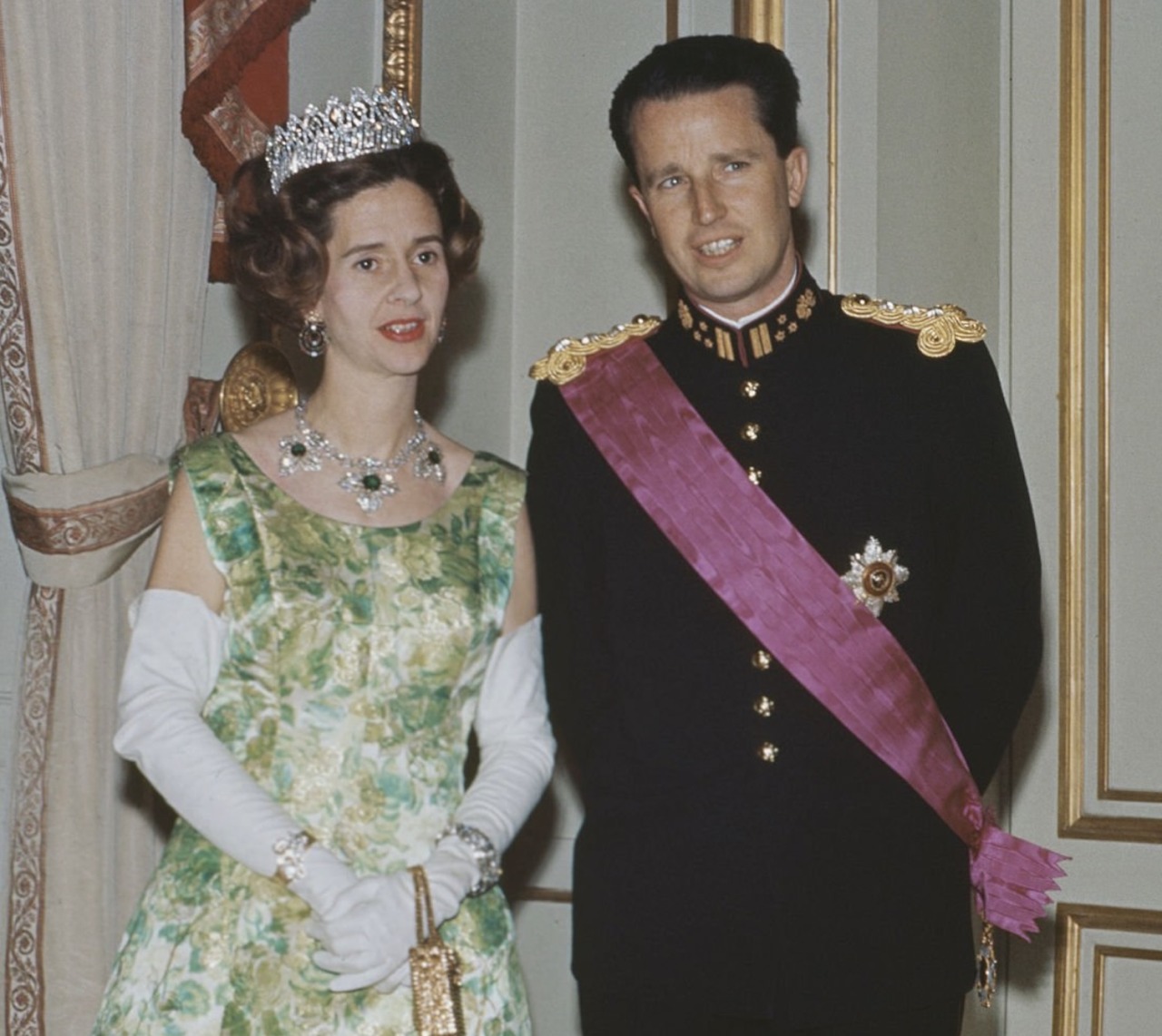 Queen Fabiola also used to wear the Diamond Necklace by itself or with several pendants including the Strawberry Leaves of her Tiara, including for the Wedding of King Constantine of Greece and Princess Anne Marie of Denmark in 1964, the Wedding of of Princess Beatrix of The Netherlands and Claus van Amsberg in 1966, the Wedding of Queen Margarethe of Denmark and Comte Henri de Montpezat in 1967, and the Belgian State Visit to Spain in 1977.
