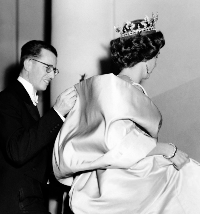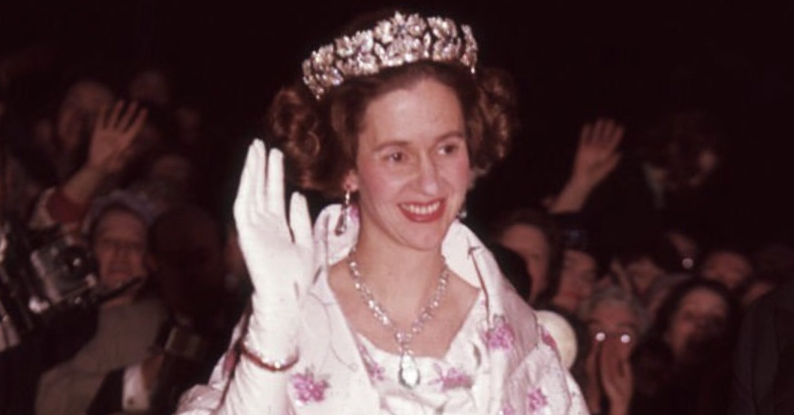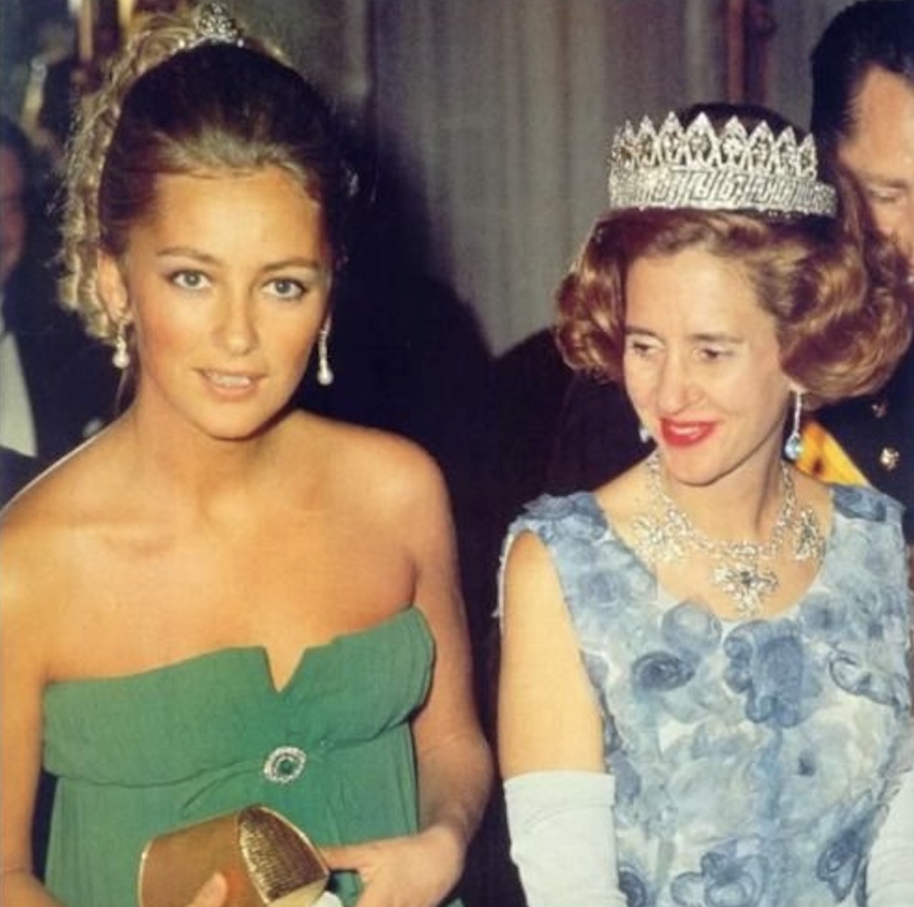 Queen Fabiola often wore the Diamond Sautoir with the Aquamarine Pendant and Earrings with the Aquamarine version of her Spanish Wedding Gift Tiara on several notable occasions, including the State Visit to Britain in 1963 and the Wedding Ball of King Constantine II of Greece and Princess Anne Marie of Denmark in 1964.