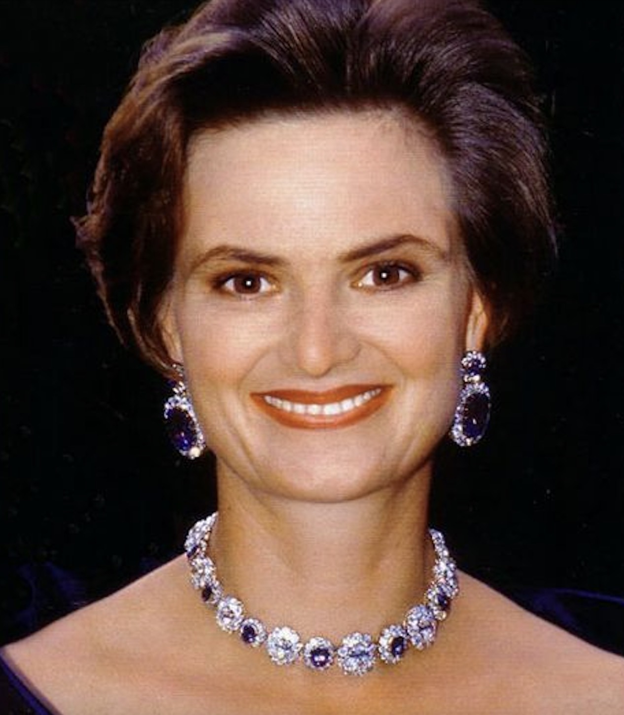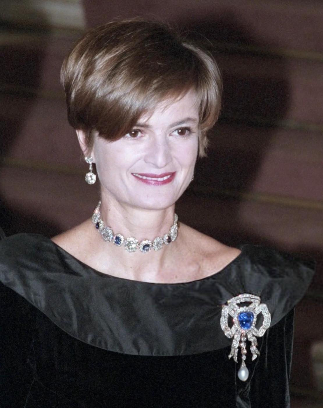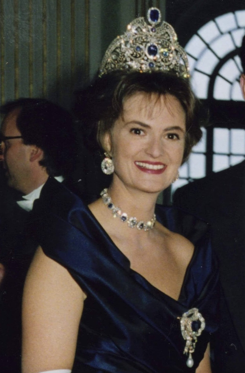 The Sapphire Parure was not among the Jewels sold at the famous Auction of the Thurn und Taxis Jewels in 1992, and made a rare appearance during Princess Gloria’s widowhood for the Wedding Ball of Hereditary Prince Alois of Liechtenstein and Duchess Sophie in Bavaria at Schloss Nymphenburg in 1993, with the Sapphire Tiara paired with the massive Diamond Earrings, Sapphire and Diamond Necklace and Sapphire Bow Brooch.
