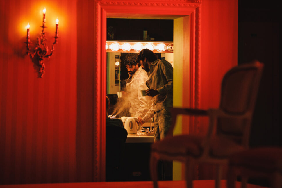 Below, see exclusive photos of the cast of Prince Faggot in their onstage dressing room.