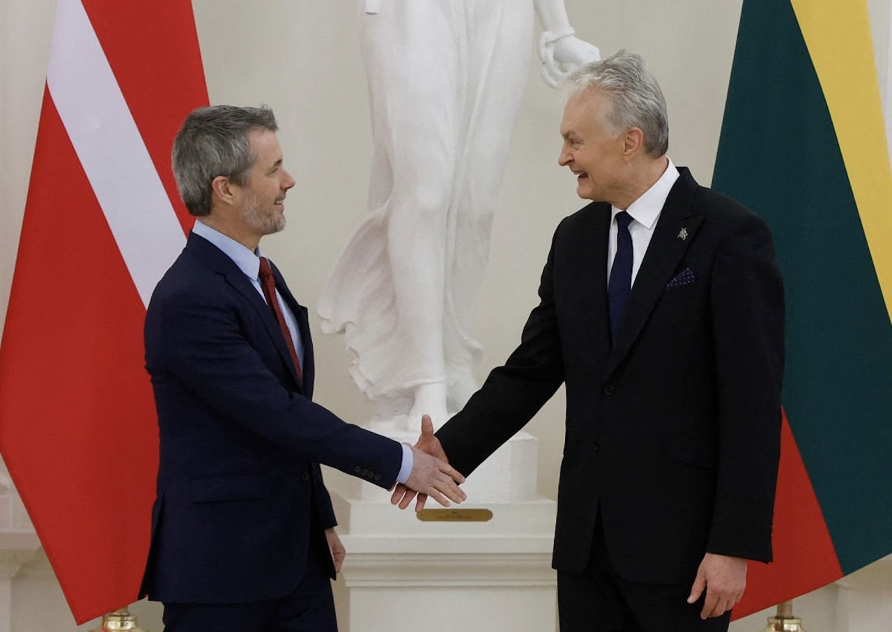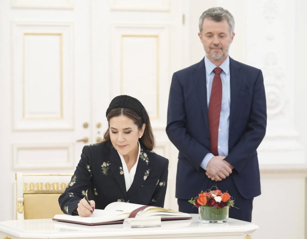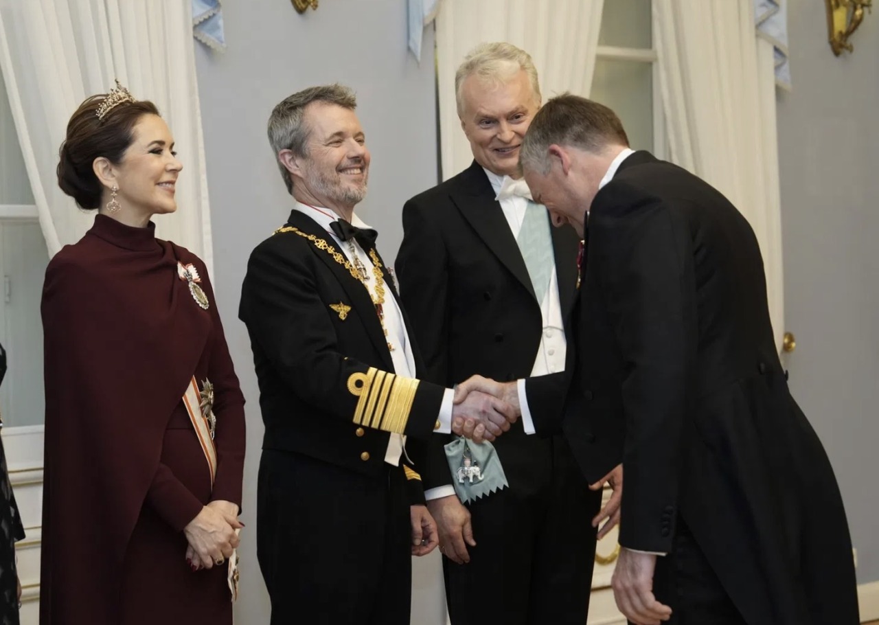 King Frederik X and Queen Mary were received by President Gitanas Nausėda and First Lady Diana Nausėdienė in an Official Welcome Ceremony at the Presidential Palace in Vilnius, followed by an extended meeting between the Lithuanian and Danish delegations.