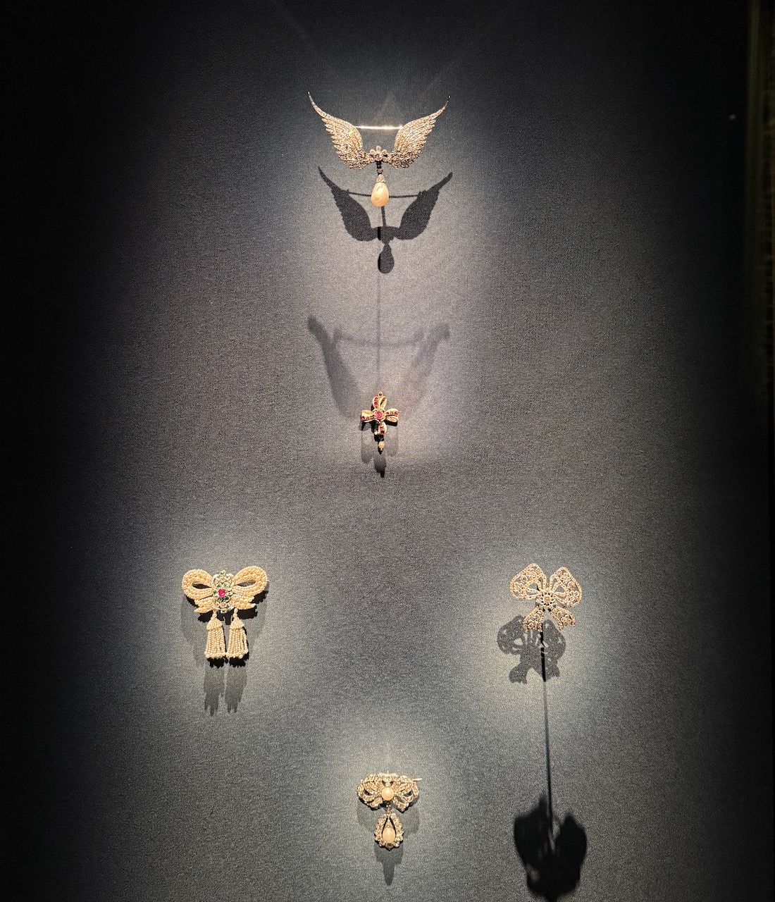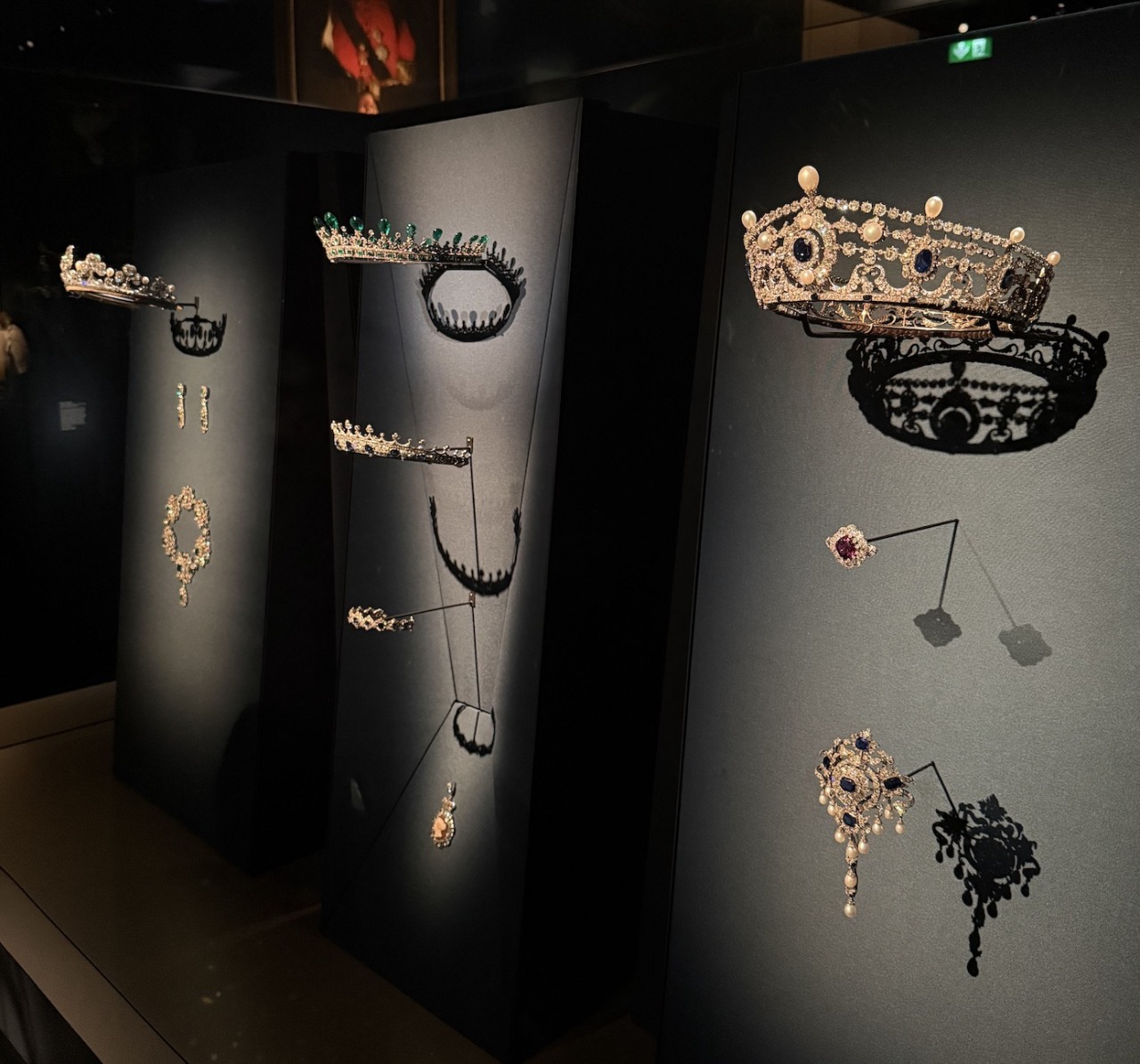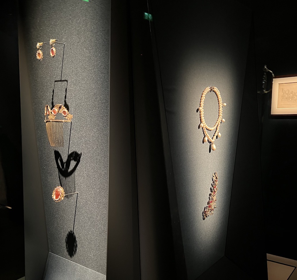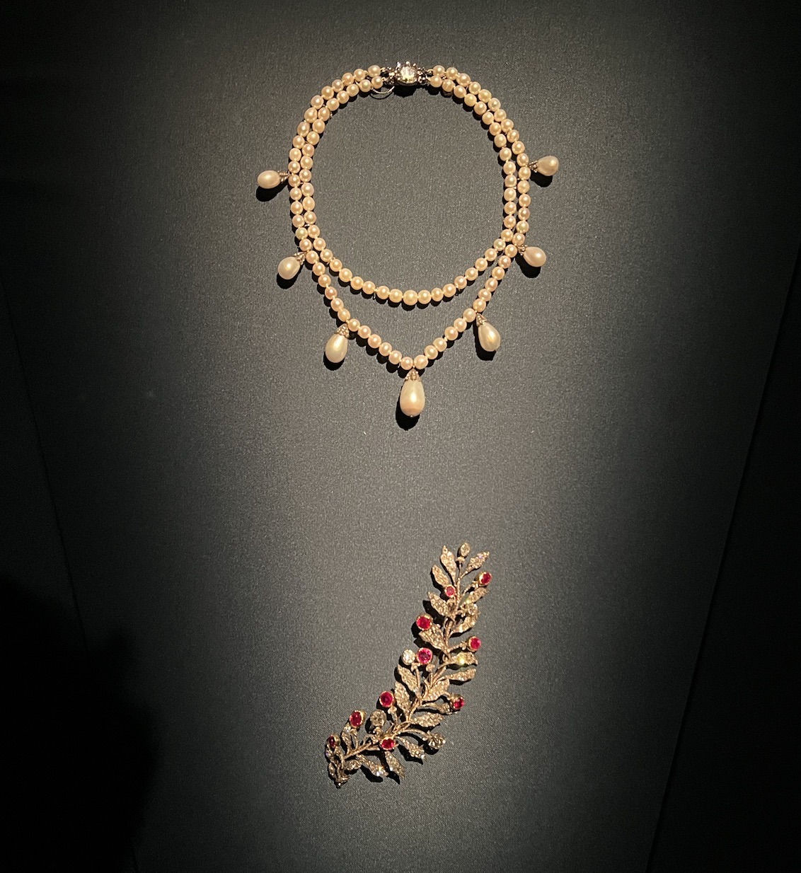 On the opposite, there is Queen Josefina’s Pearl Necklace from the Al Thani Collection alongside an iconic Ruby and Diamond Corsage Brooch from Empress Josephine.
