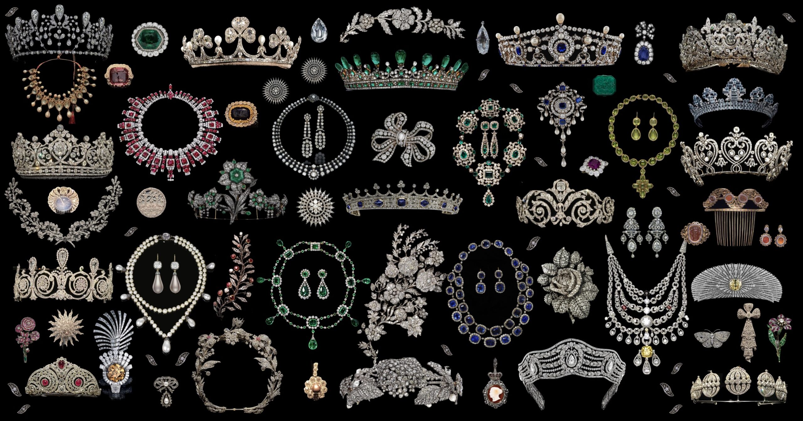 From gemstones and tiaras to brooches, diadems and necklaces, it presents resplendent pieces intended to be worn in the opulent settings of Europe’s royal courts, where they could articulate the status, heritage and authority of their owners.
