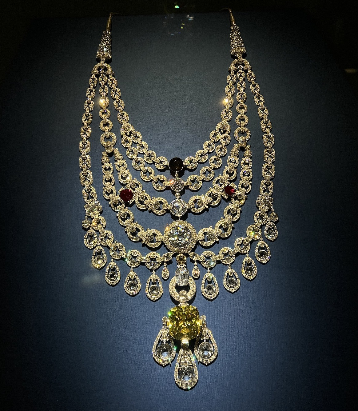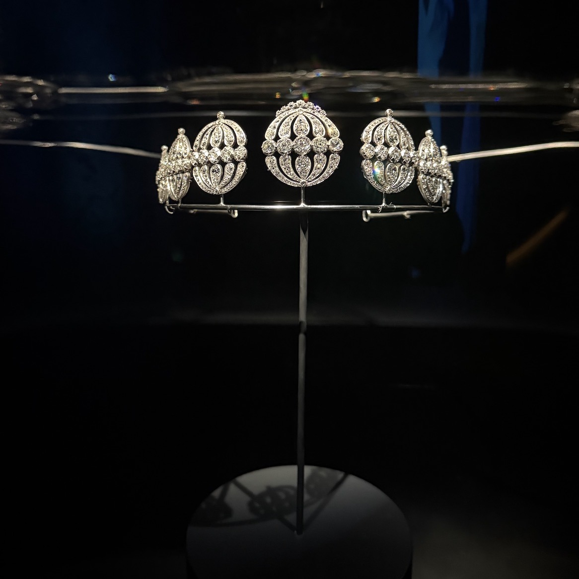 Then we get to the jewels created for foreign royals, like the Maharaja of Nawanagar’s Cartier Ruby Necklace and Eye of the Tiger Sarpech, the Maharaja of Patiala’s Cartier Diamond Necklace, and some traditional Indian Jewellery from the Al Thani Collection before finishing with a replica of the Crown of Empress Farah of Iran created by Van Cleef & Arpels.