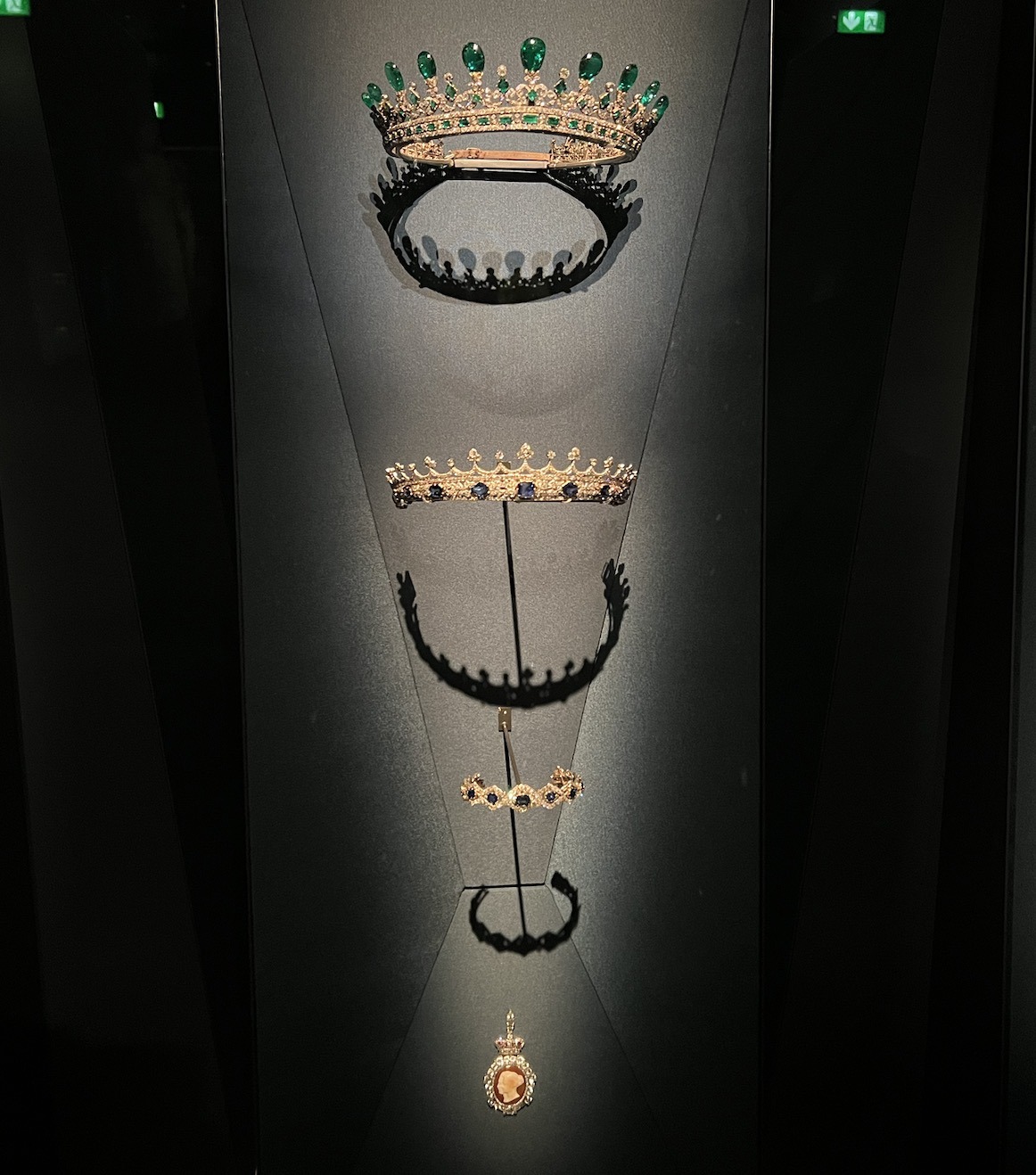The highlight of the exhibition is the gallery that display the most spectacular Royal and Noble Jewels, many from the Victoria and Albert Museum, with the cases divided by country and dynasties.