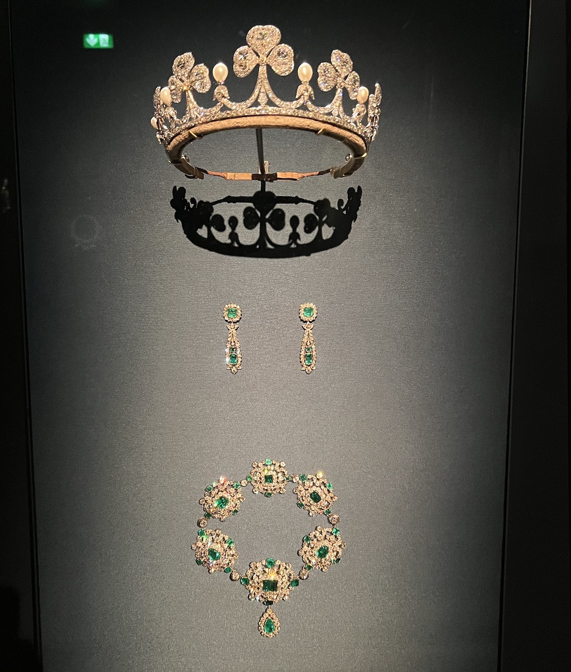 The Dufferin and Ava Shamrock Tiara and the Londonderry Emerald Parure from the V&A .