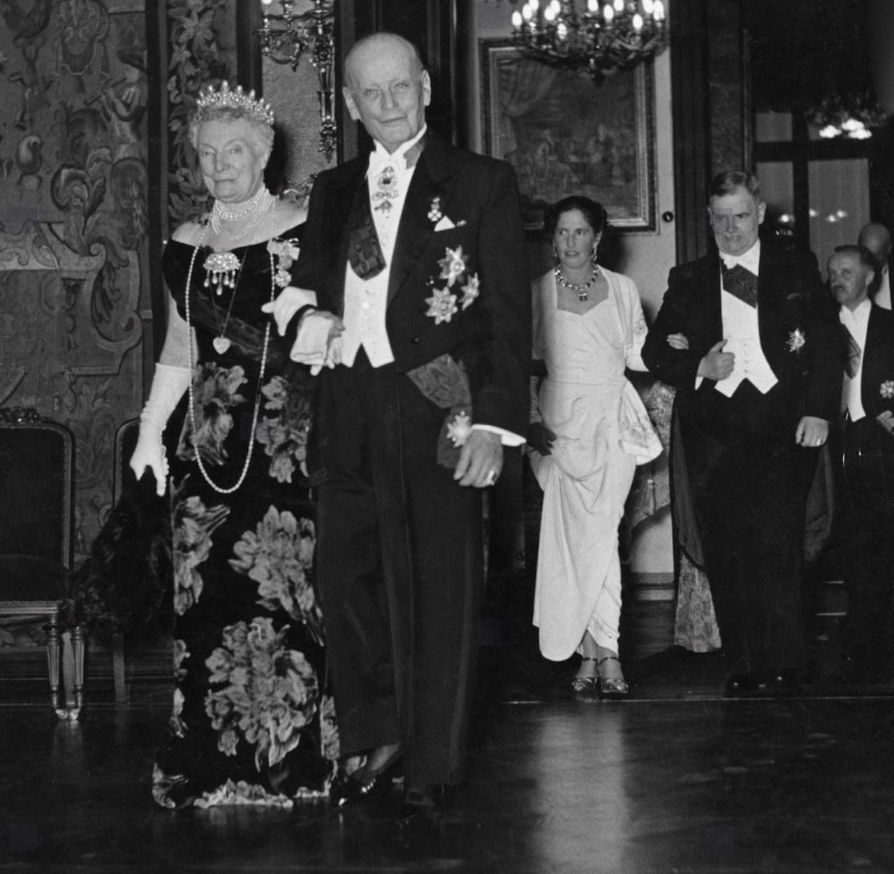 Archduchess Margarethe Klementine wore Empress Eugénie’s Pearl Tiara numerous times during her long marriage, including the Diamond Wedding Anniversary of the Prince and Princess von Thurn und Taxis at Schloss St. Emmeram in Regensburg in 1950, and it was inherited by her sons in succession but remained unworn for a few years.