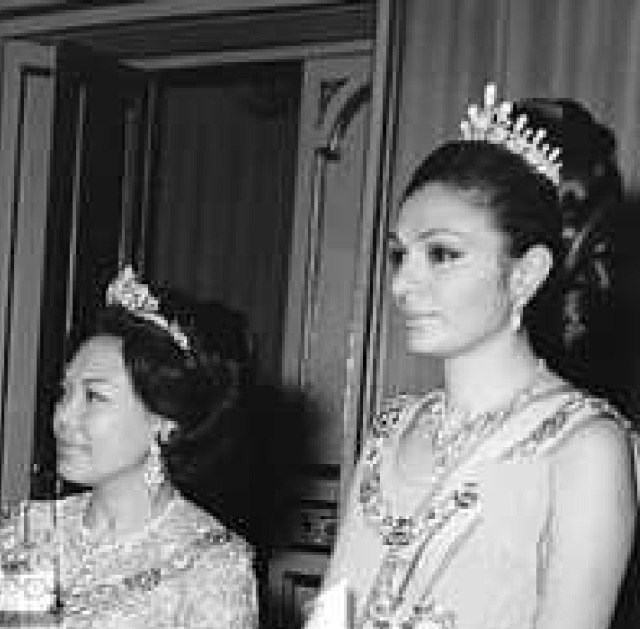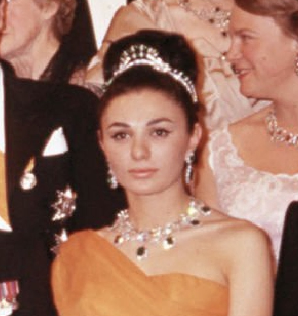 One of the last iconic appearances of the Turquoise Tiara was for the 50th Anniversary of the Pahlavi Dynasty in 1976.