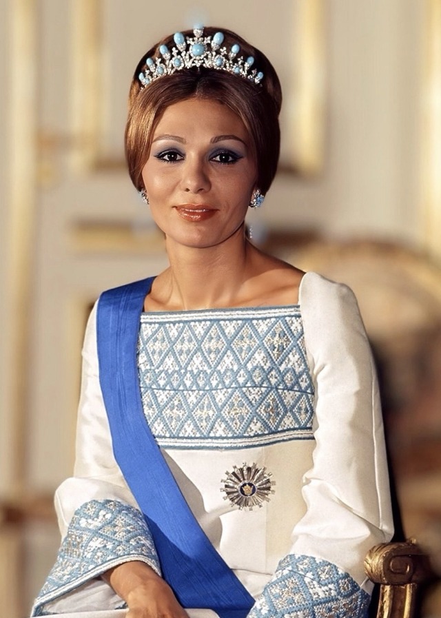 Through the 1970s, Empress Farah often wore the Van Cleef & Arpels Turquoise Tiara for several Portraits, as well as for the Nowruz Festivities in addition to a few Opening Ceremonies for Parliament.