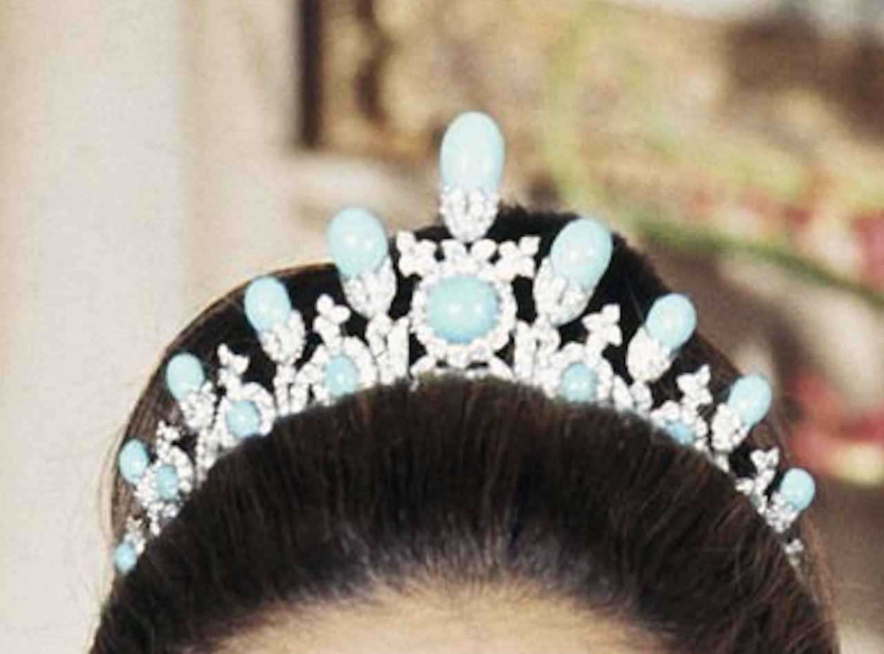 Empress Farah debuted the Van Cleef & Arpels Turquoise Tiara on a State Visit to Malaya in 1969 followed by a State Visit to India and to Tunisia not long afterwards, as well as for Nowruz, the Persian New Year Festivities.