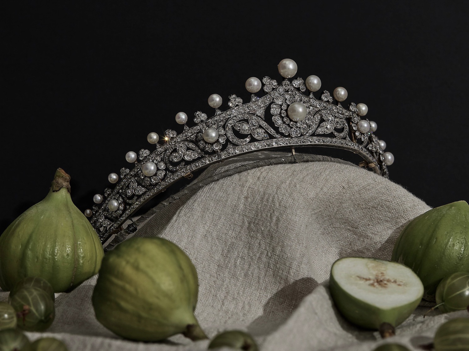 The presence of daisies and ivy in this tiara, accompanied by pearls, could suggest a gift for a bride. In the ‘Language of Flowers’, a daisy represents innocence, loyal love and purity while ivy is believed to be “an aid to love”. In society, the first official time a woman would wear a tiara is on her wedding day, an English tradition with roots back to the end of the 15th century.