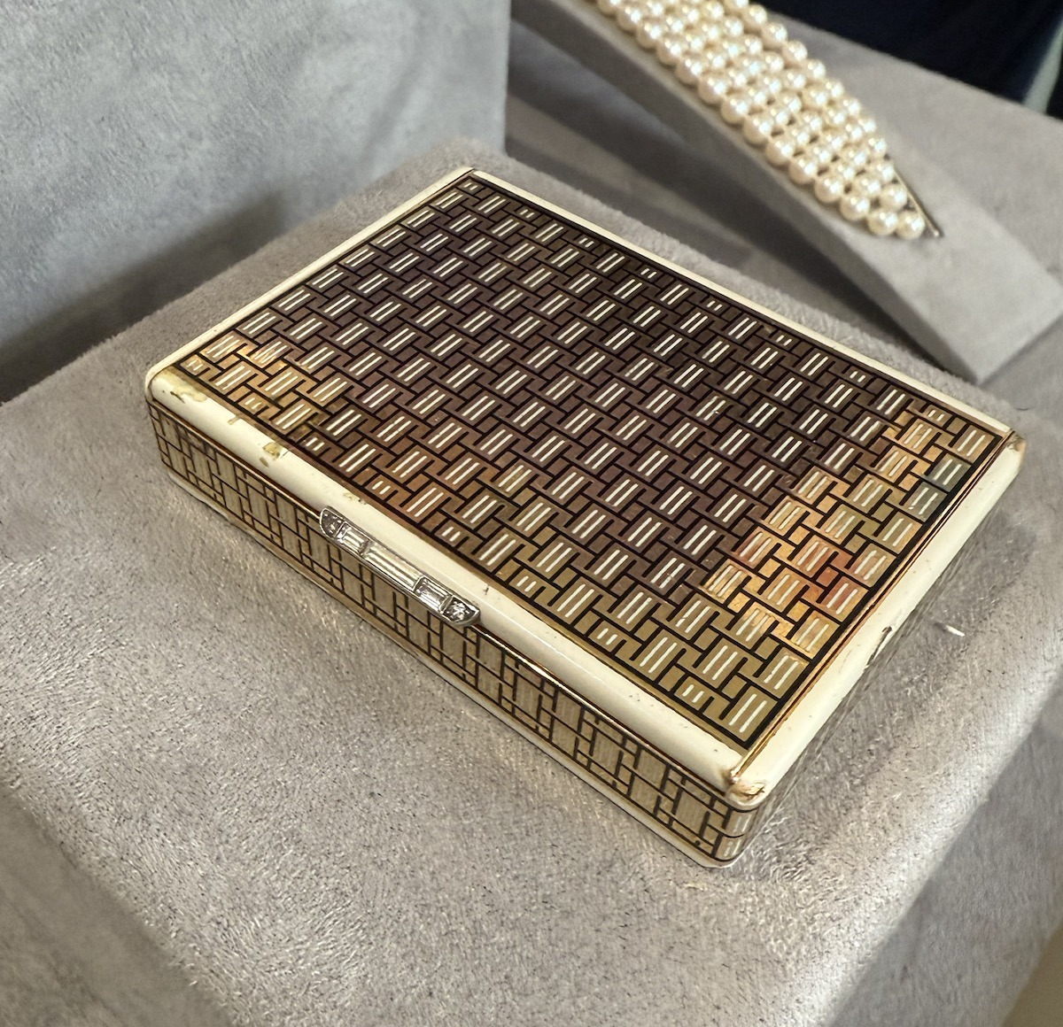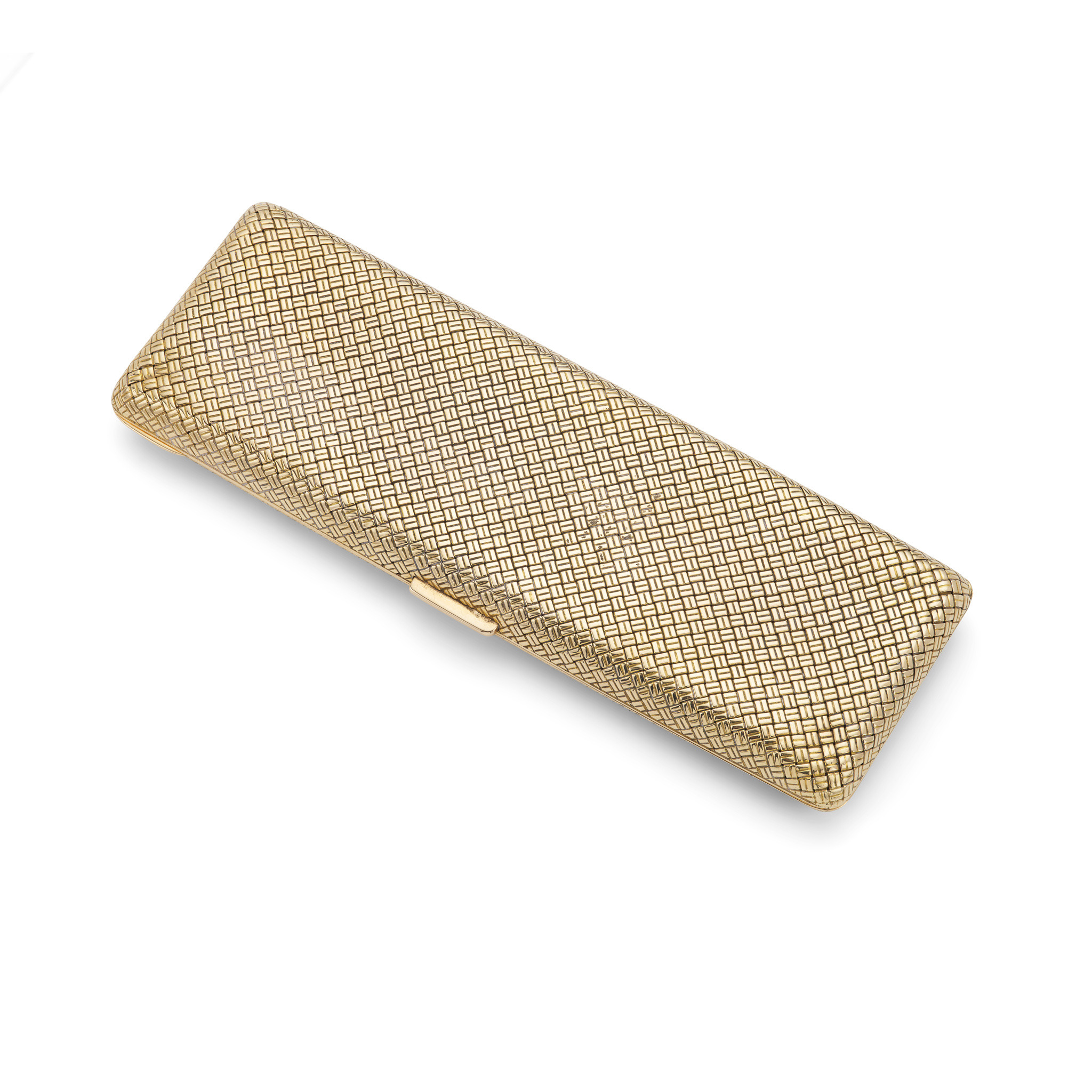 A Van Cleef & Arpels mid 20th century case of elongated rectangular outline, cross-hatch interwoven design throughout, signed Van Cleef & Arpels NY.