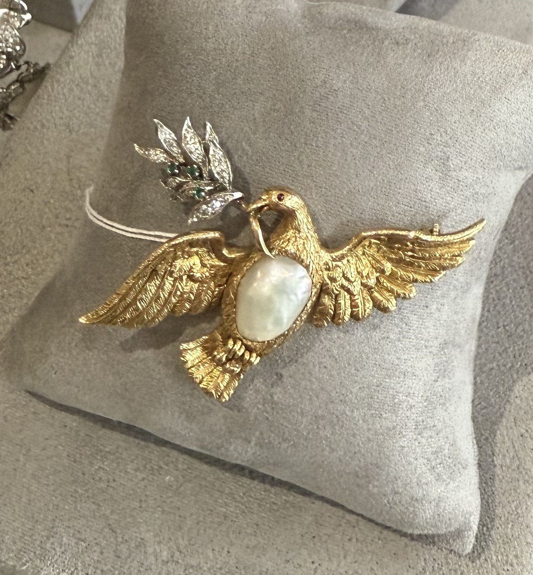 Verdura Pearl, Emerald and Diamond Dove Brooch