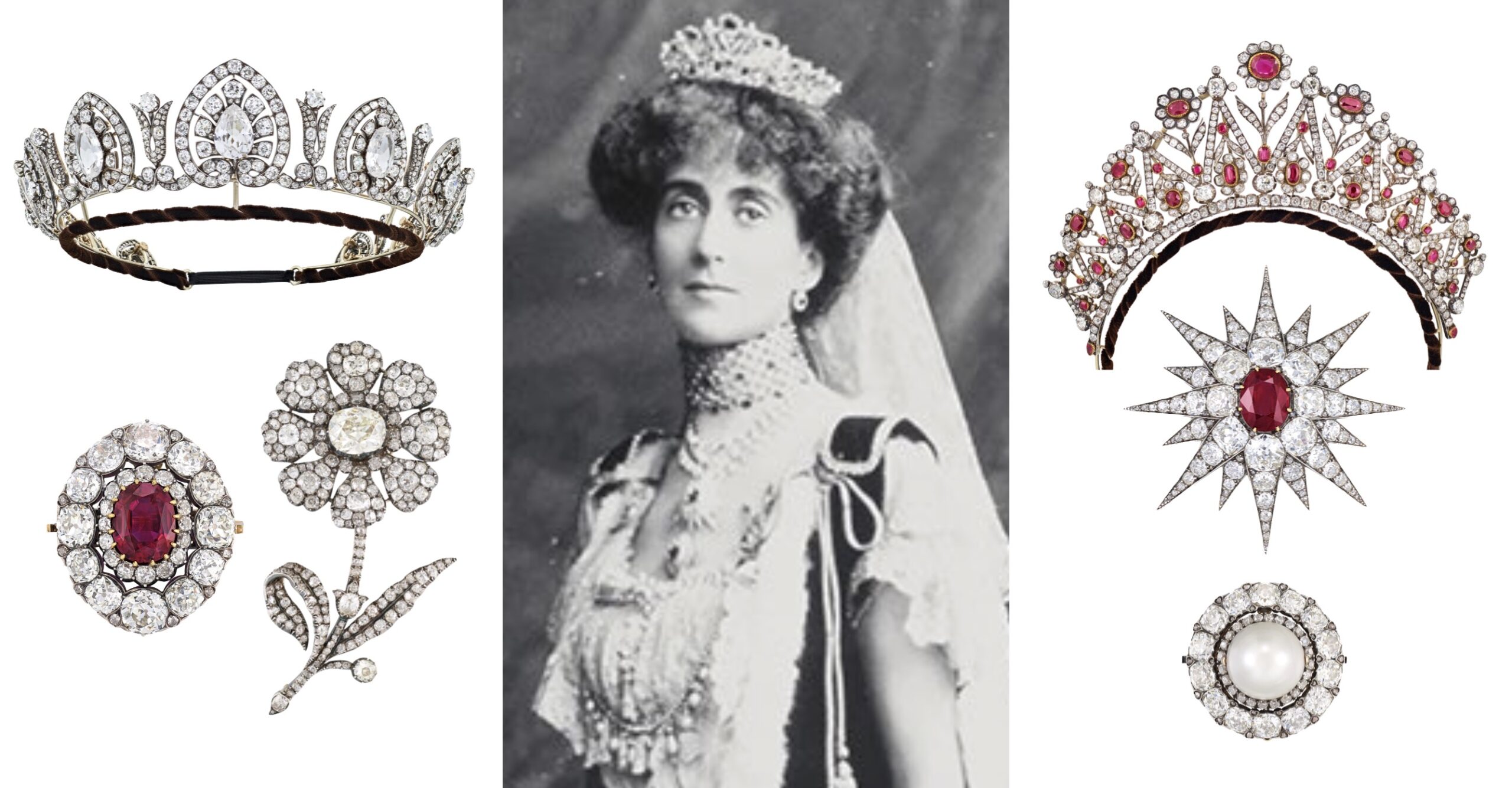 There are many striking antique Jewels coming up for Auction this month, with Two Tiaras and four Brooches and Pendants from the collection of the late 3rd Countess of Stradbroke are on Auction at Christie’s in Geneva next week!
