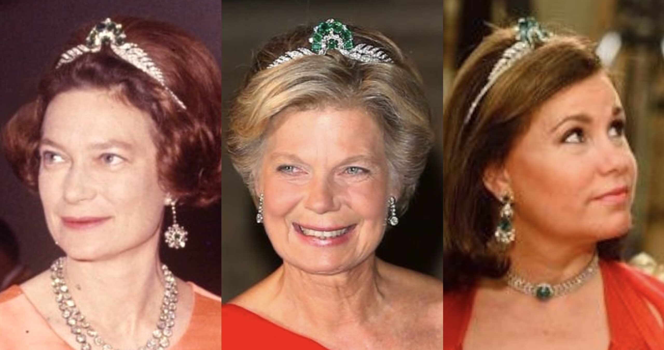 Made by Van Cleef & Arpels for Grand Duchess Joséphine Charlotte, using two pendants that had belonged to her mother, Queen Astrid, the Emerald Peacock Tiara was often worn by her as a Necklace, though it has only been rarely worn by Grand Duchess Maria Teresa and Archduchess Marie Astrid of Austria in recent years.