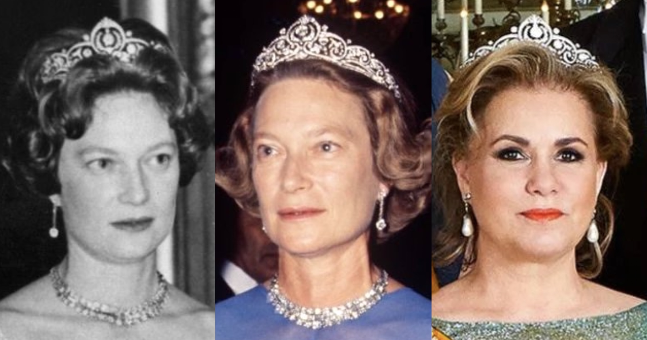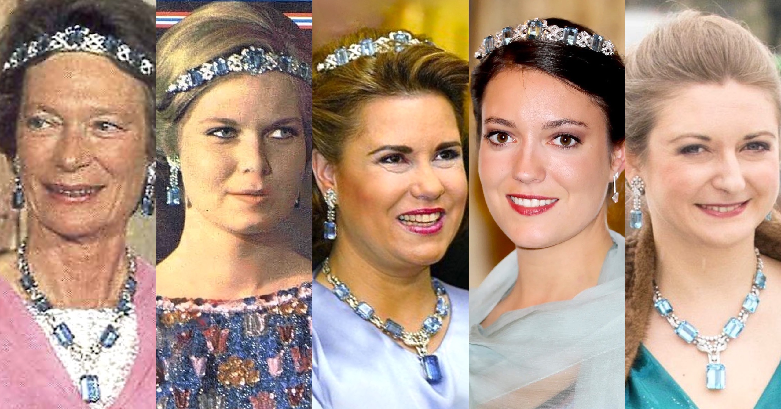 Grand Duchess Joséphine Charlotte converted many lesser jewels into Tiaras and Parures, among them was the magnificent Aquamarine Parure she had received as aa Wedding Gift in 1953, the Bracelet of which was worn as an Aquamarine Tiara by the late 1970s. The Aquamarine Parure has been a favourite of Grand Duchess Maria Teresa and has also been worn by Hereditary Grand Duchess Stéphanie in recent years.