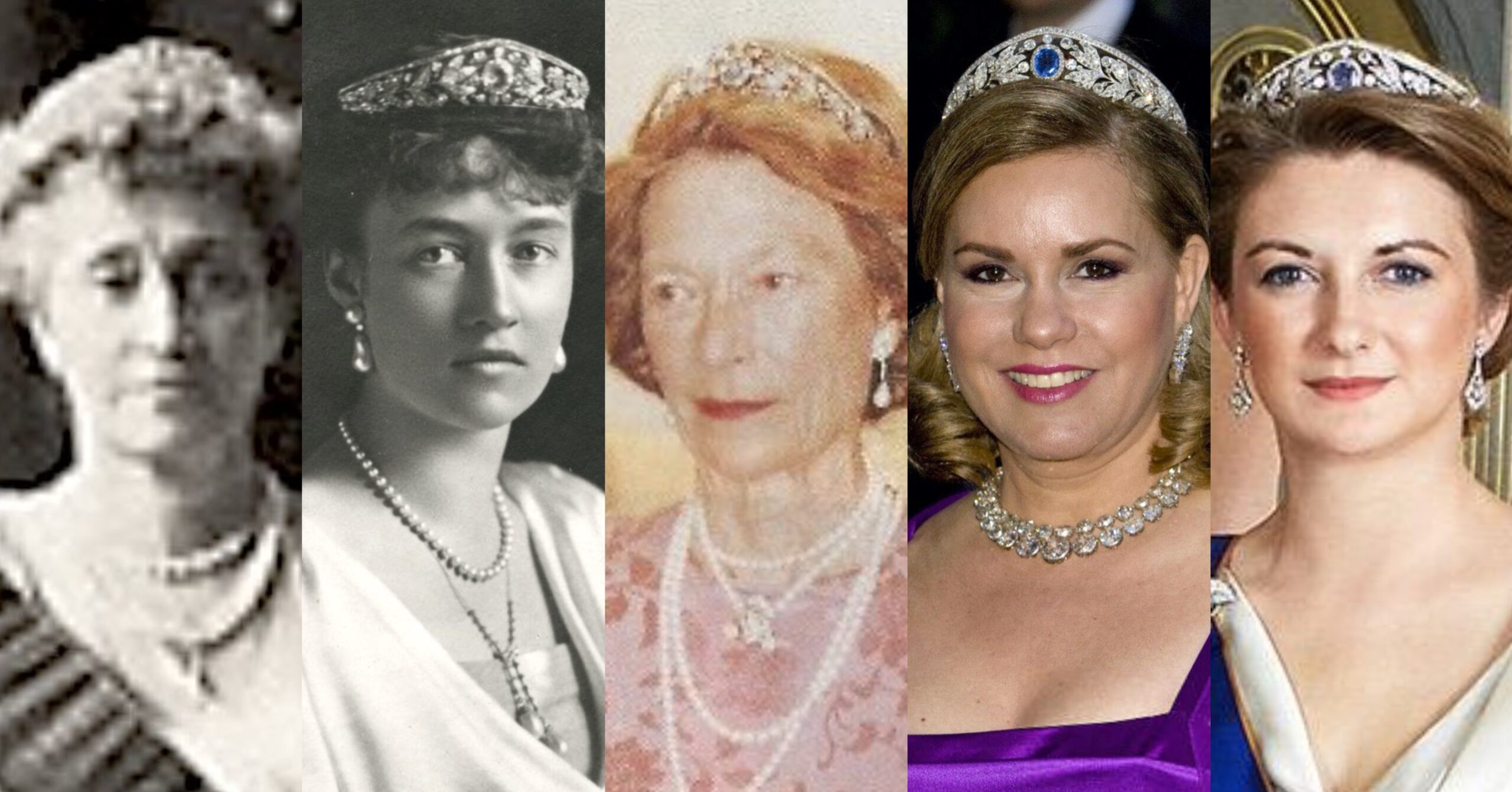 Created for Grand Duchess Adelaide between 1865 and 1870, this Tiara was frequently worn by Grand Duchess Charlotte, and later worn by Grand Duchess Maria Teresa frequently in her years as Hereditary Grand Duchess. The Grand Duchess Adélaïde Tiara has also been a frequent choice for Hereditary Grand Duchess Stéphanie, and has been worn by Princess Claire.