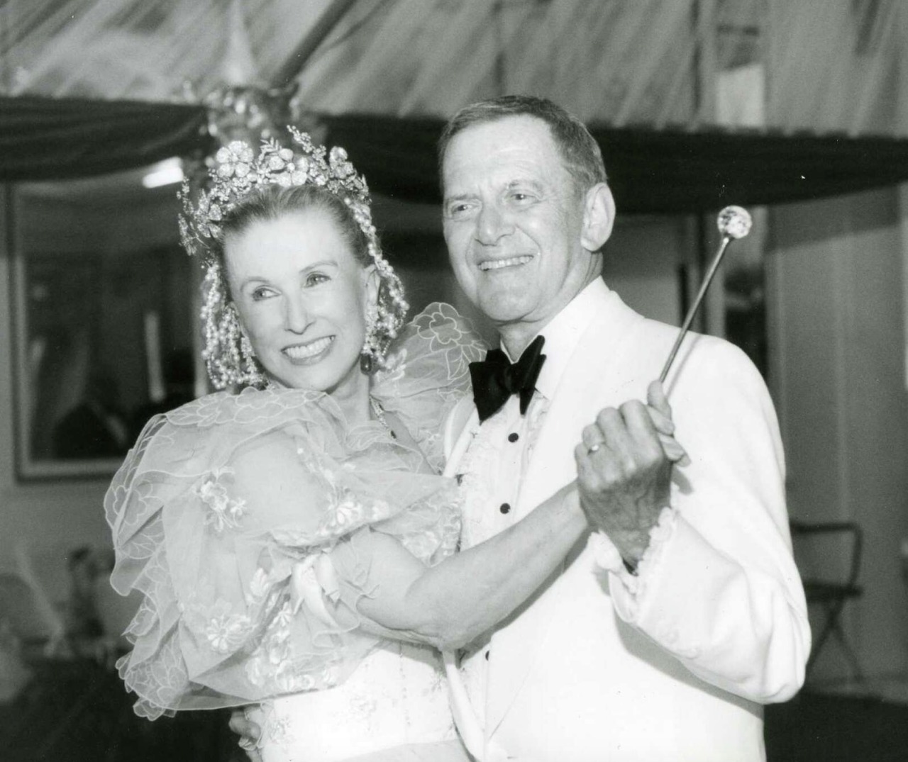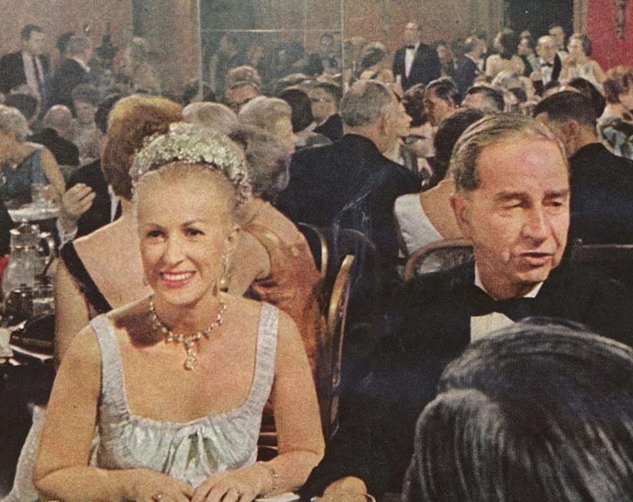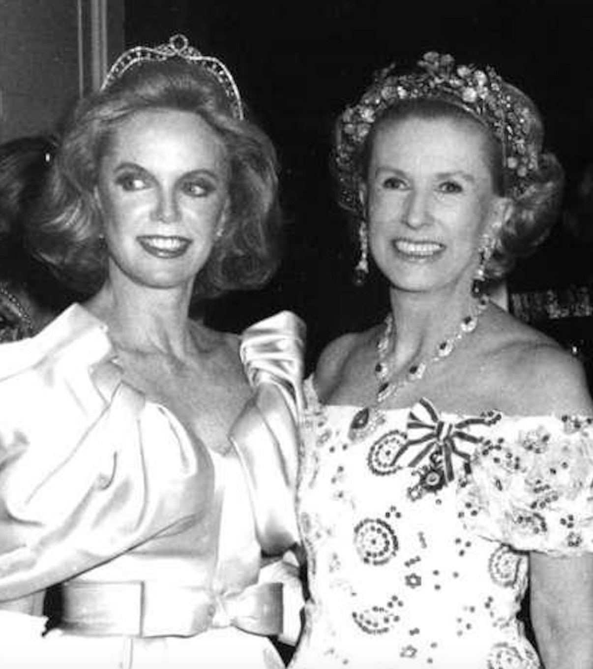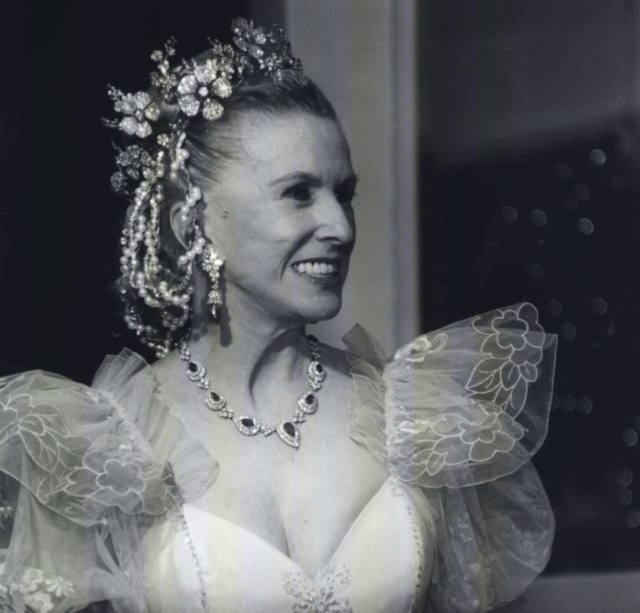 Mrs. Whitney pins her tiara on with four hobby pins and then forgets she has it on. “I enjoy wearing it because it’s light and so well distributed. A heavy tiara can ruin a woman’s evening,” she said.