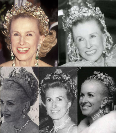 The Diamond Wildflower Tiara was bough by Cornelius Vanderbilt Whitney for his fourth wife, Marylou, who often wore the Tiara at society events in New York City and relished in its reported royal provenance.