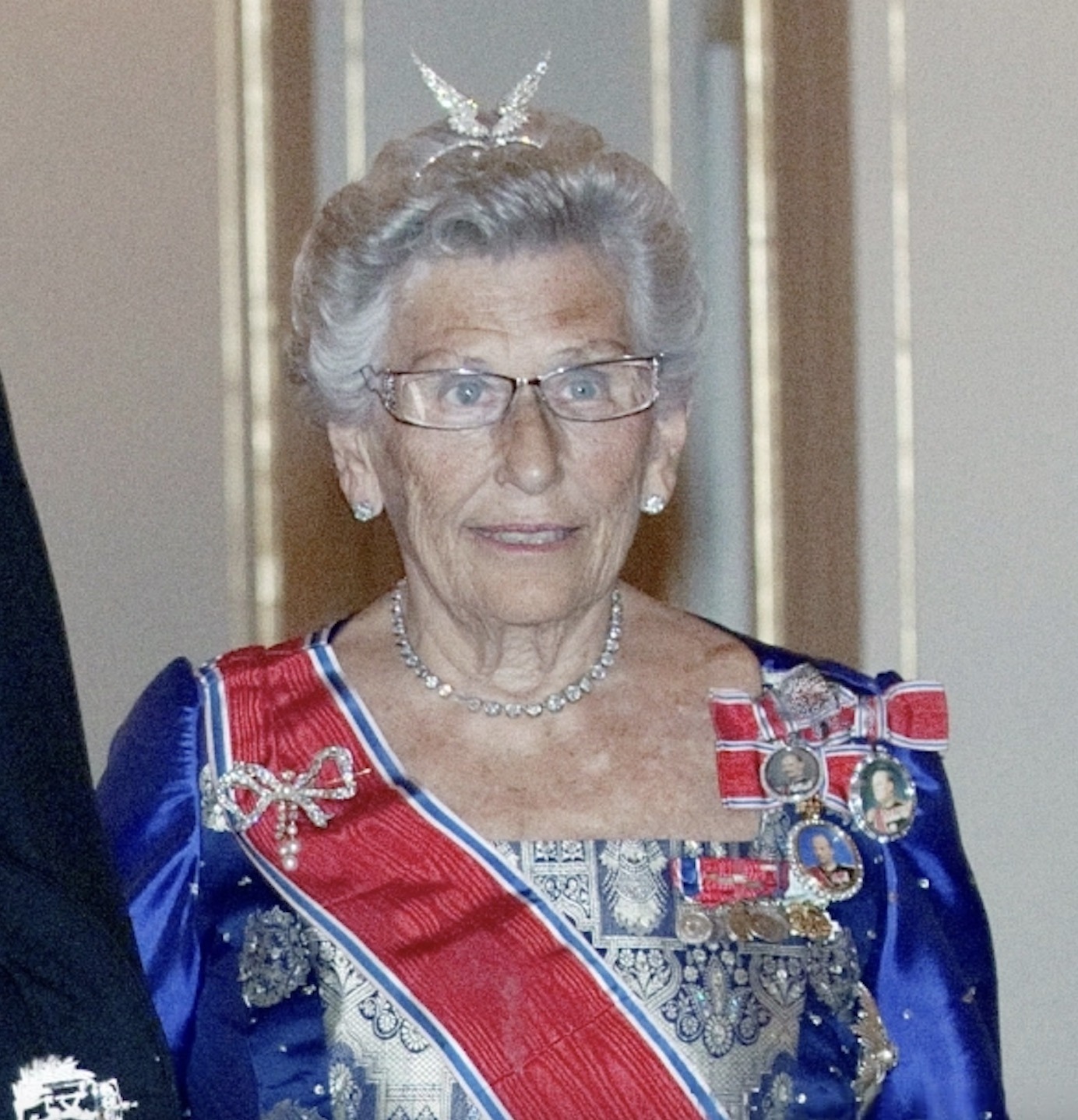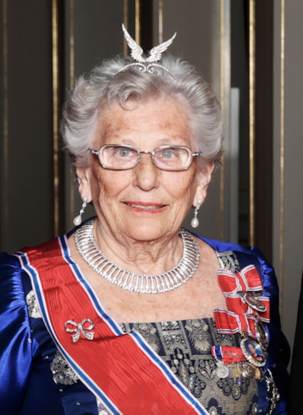 Happy Birthday to Princess Astrid of Norway, who turns 94 today! The middle child and second daughter of King Olav V of Norway and Princess Martha of Sweden, elder sister of King Harald, who served as ‘First Lady’ for her grandfather and father, the Princess has a historic jewellery collection, which includes this striking Diamond Aigrette Tiara!