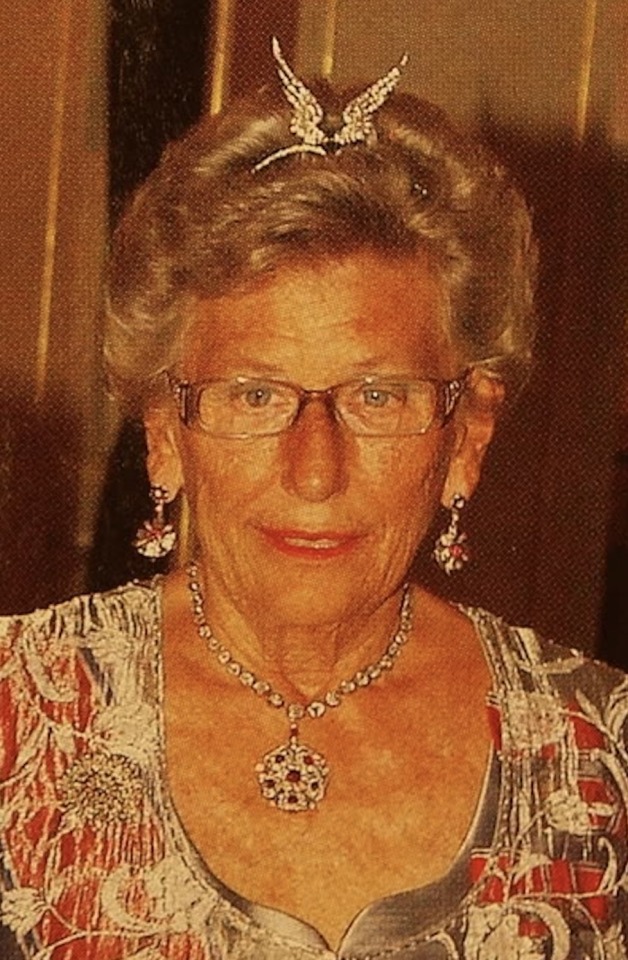 While she began wearing the Ruby Aigrette Tiara in the early 1970s, one of the earliest appearances of the Diamond Wings Aigrette Tiara on Princess Astrid was at a Gala Performance during the Spanish State Visit to Norway in 1982.