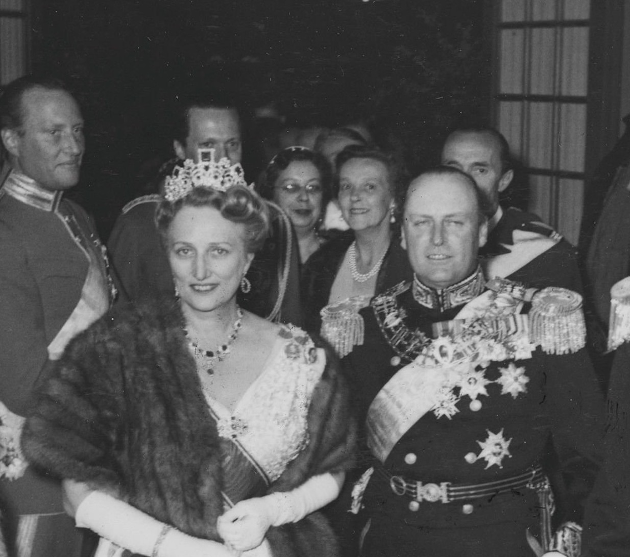 In February 1948, the communists seized power in Czechoslovakia, which caused widespread fear that Norway was next on the USSR’s list – indeed, this led to Norway abandoning its neutrality and becoming a founding member of NATO. In the summer, Crown Prince Olav took a large trunk containing his mother’s jewels with him when he and his family travelled to London for the Olympics. Before returning home, he deposited it at the Norwegian Embassy and wrote to the then Queen Elizabeth that he feared they might not be be able to get the jewels out of Norway if they had to flee a second time and asked if she might store them where she kept her own jewels, to which Queen Elizabeth agreed.