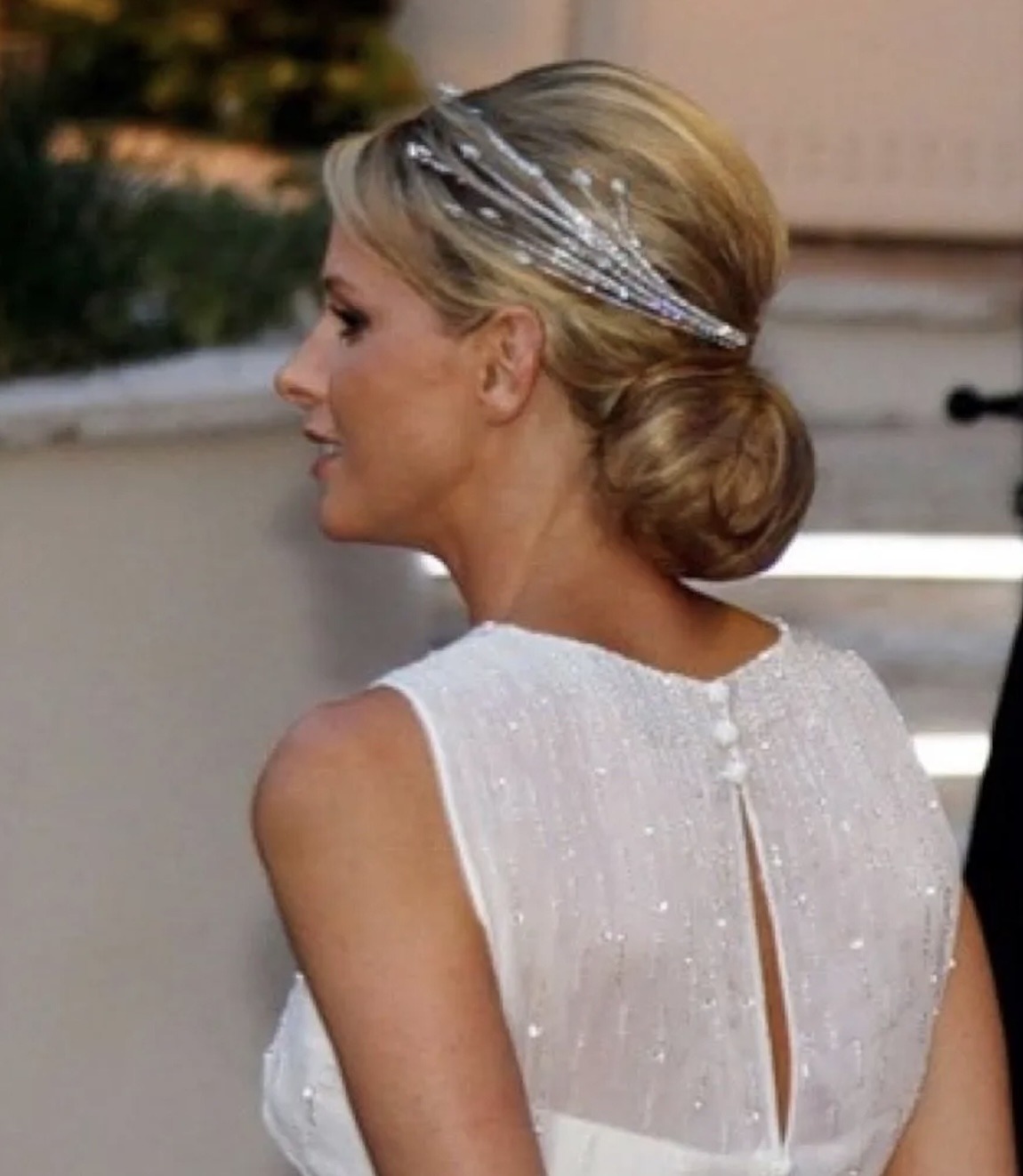 Princess Charlene later wore the Diamond Foam Tiara for a portrait, not long after her wedding, when she posed with Lorenz Bäumer as part of a series of publicity shots.