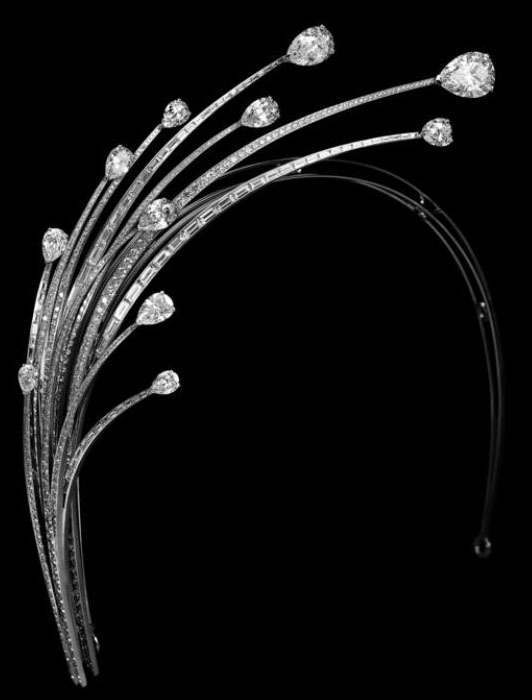 When Prince Albert II of Monaco was marrying Charlene Wittstock in 2011, major jewellery houses were asked to submit sketches for jewels for the new Princess, with the couple choosing this design by Lorenz Bäumer, which was then named the Diamond Foam Tiara, though it is sometimes called the Bäumer Aigrette Tiara. The Princess was involved during the process of its creation, with Bäumer releasing footage of her trying it on.