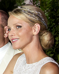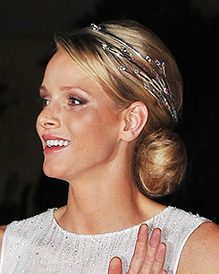Happy Birthday to Princess Charlene of Monaco, who turns 48 today! The South African Olympic Swimmer who became the Consort of the small Mediterranean Principality, the Princess is not known for wearing many jewels but a recent reappearence has prompted us to revisit this Diamond Aigrette Tiara!