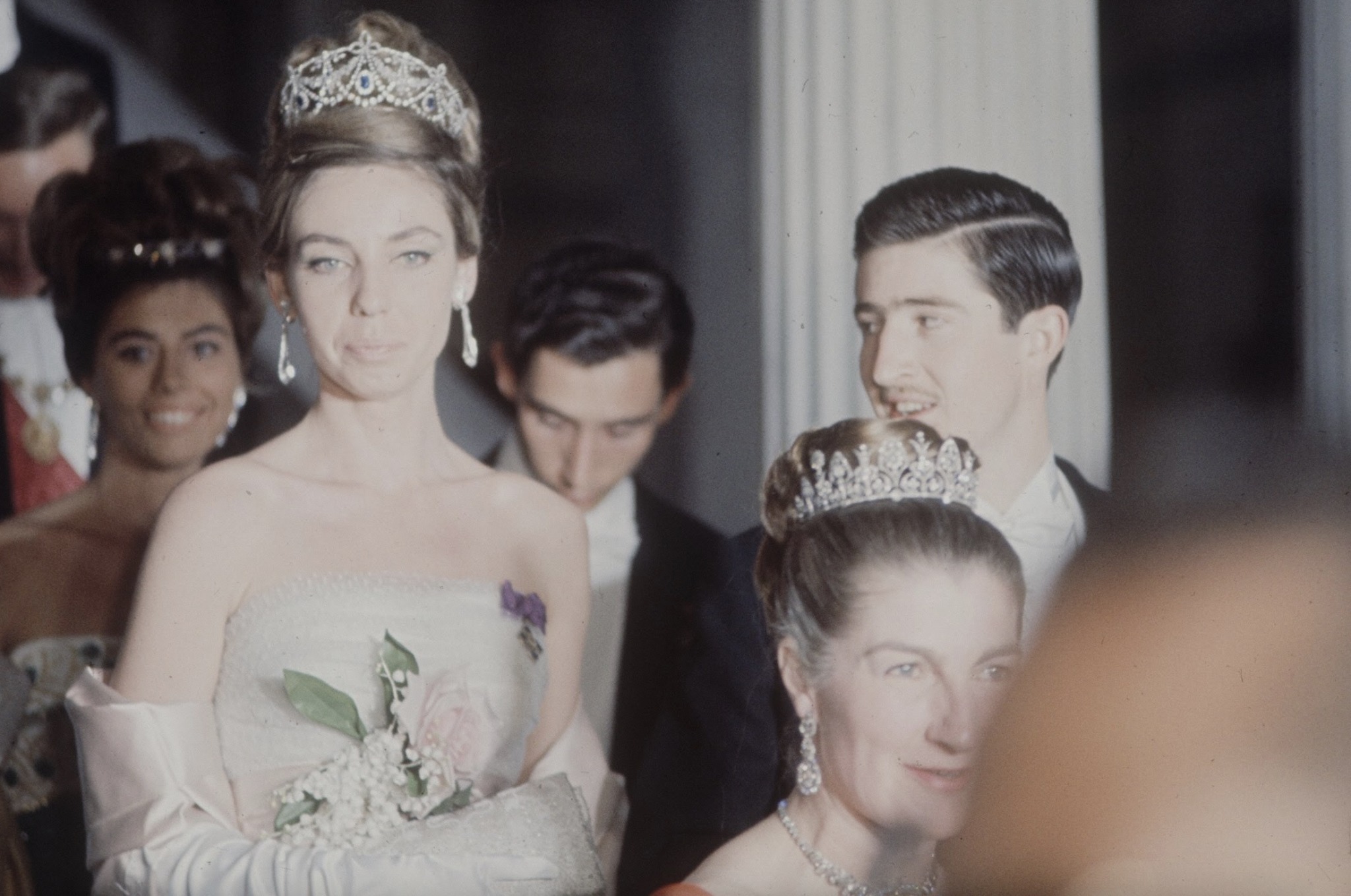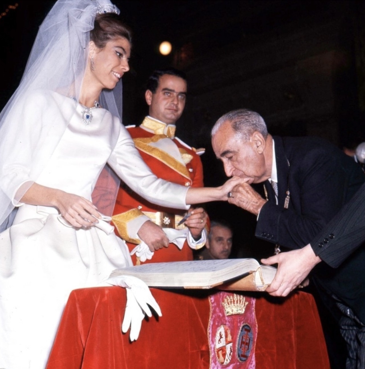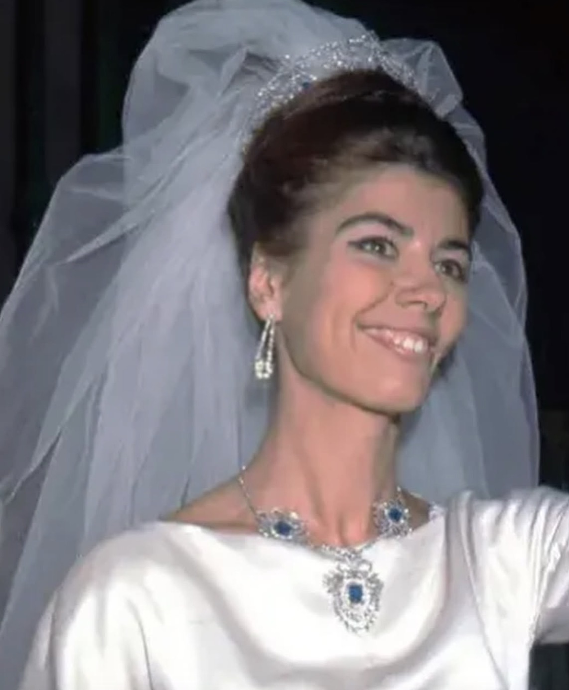 In 1962, the Sapphire and Diamond Tiara was worn by Princess Tessa’s sister, Princess Cristina, for the Wedding Ball of their cousin, Prince Juan Carlos of Spain, and Princess Sophia of Greece at the Royal Palace of Athens.
