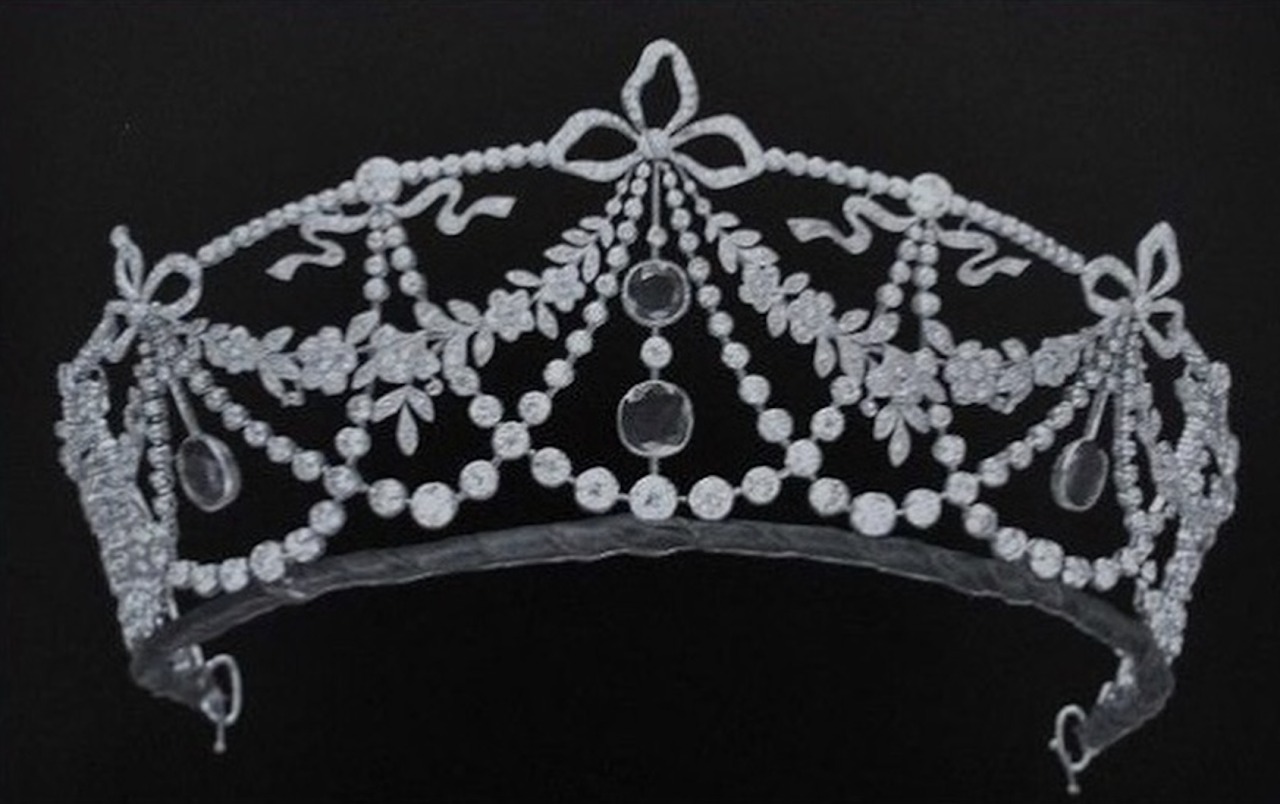 The exact origin of the Belle Epoque Sapphire and Diamond Tiara is unknown but it may have originated from Princess Tessa’s grandmother, Infanta María Teresa, who was married to Prince Ferdinand of Bavaria.