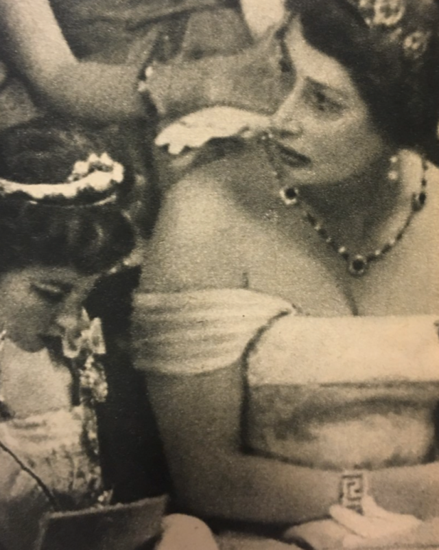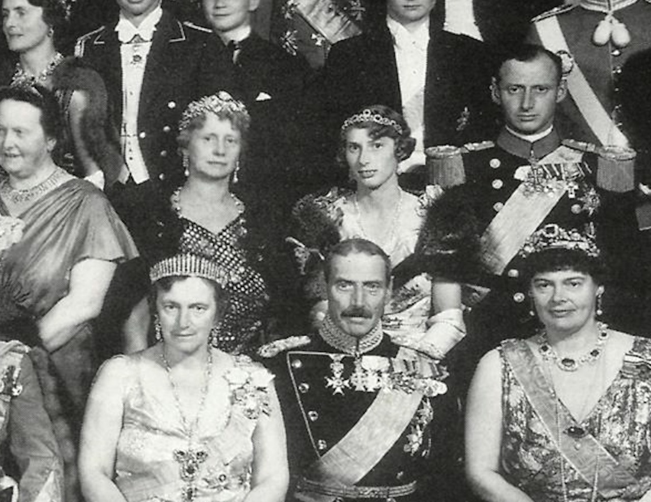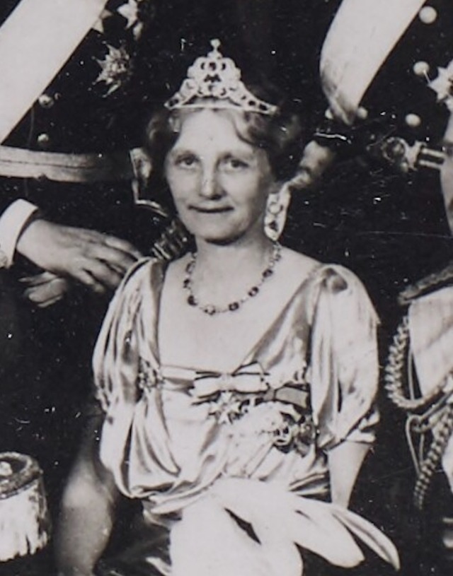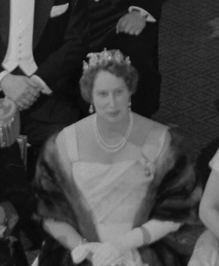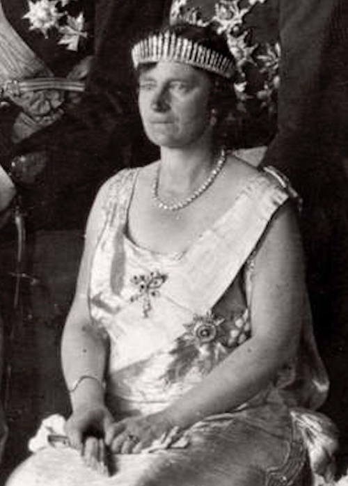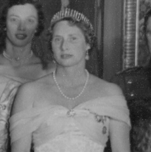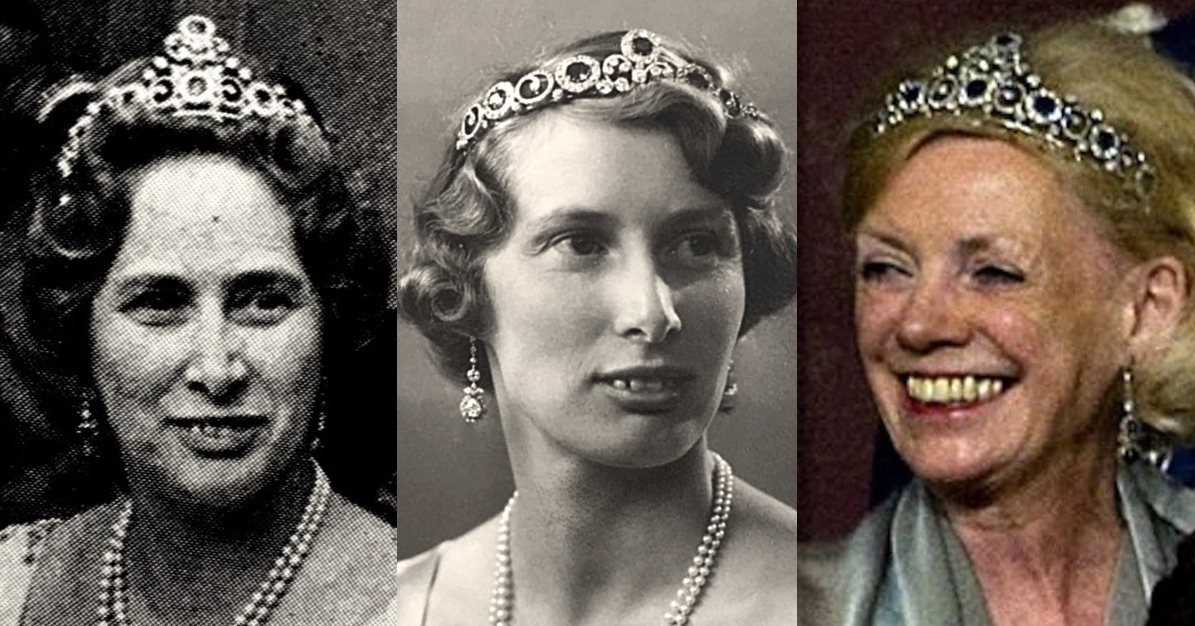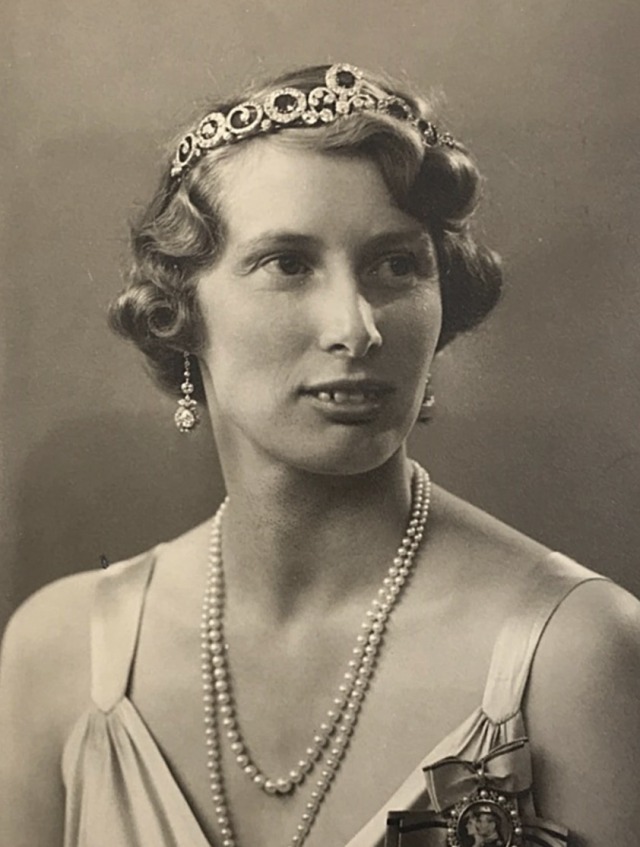 In 1933, Queen Alexandrine presented the Russian Sapphire Tiara to Princess Caroline-Mathilde of Denmark on wedding to her second son, Prince Knud, who wore the piece in it’s earliest configuration in a portrait, King Christian X’s Silver Jubilee in 1937, and the Wedding Gala of Crown Prince Paul of Greece and Princess Frederica of Hanover in 1938.
