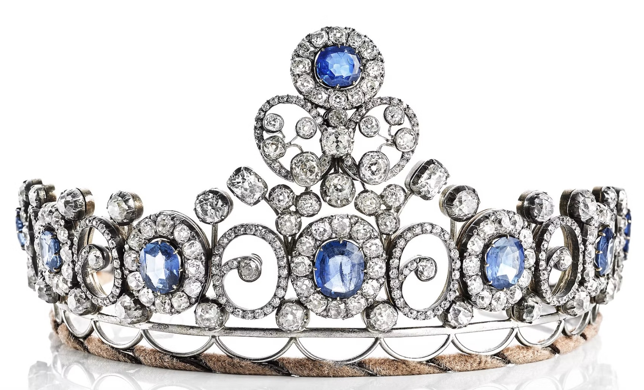When Princess Alexandrine of Mecklenburg-Schwerin married Prince Christian of Denmark in 1898, Tsar Nicholas II and Empress Alexandra Feodorovna of Russia gave a Tiara composed of eight oval-cut ceylon sapphires and is attributed to jewellers C.E. Bolin in St. Petersburg.