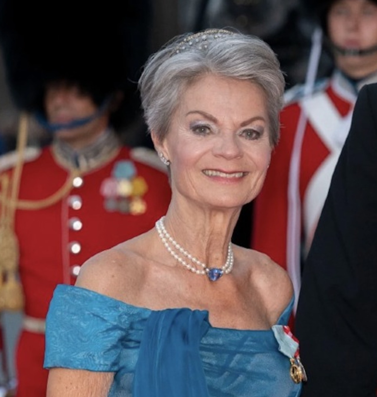 Like her mother-in-law, Princess Caroline-Mathilde wore the sapphire elements of the tiara on a necklace, along with Princess Thyra’s Sapphire Tiara.