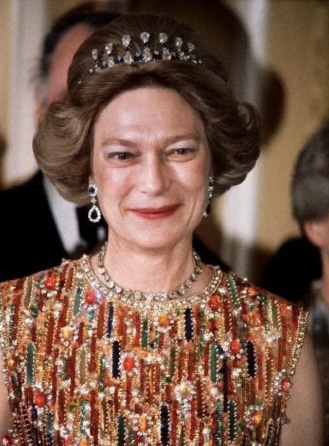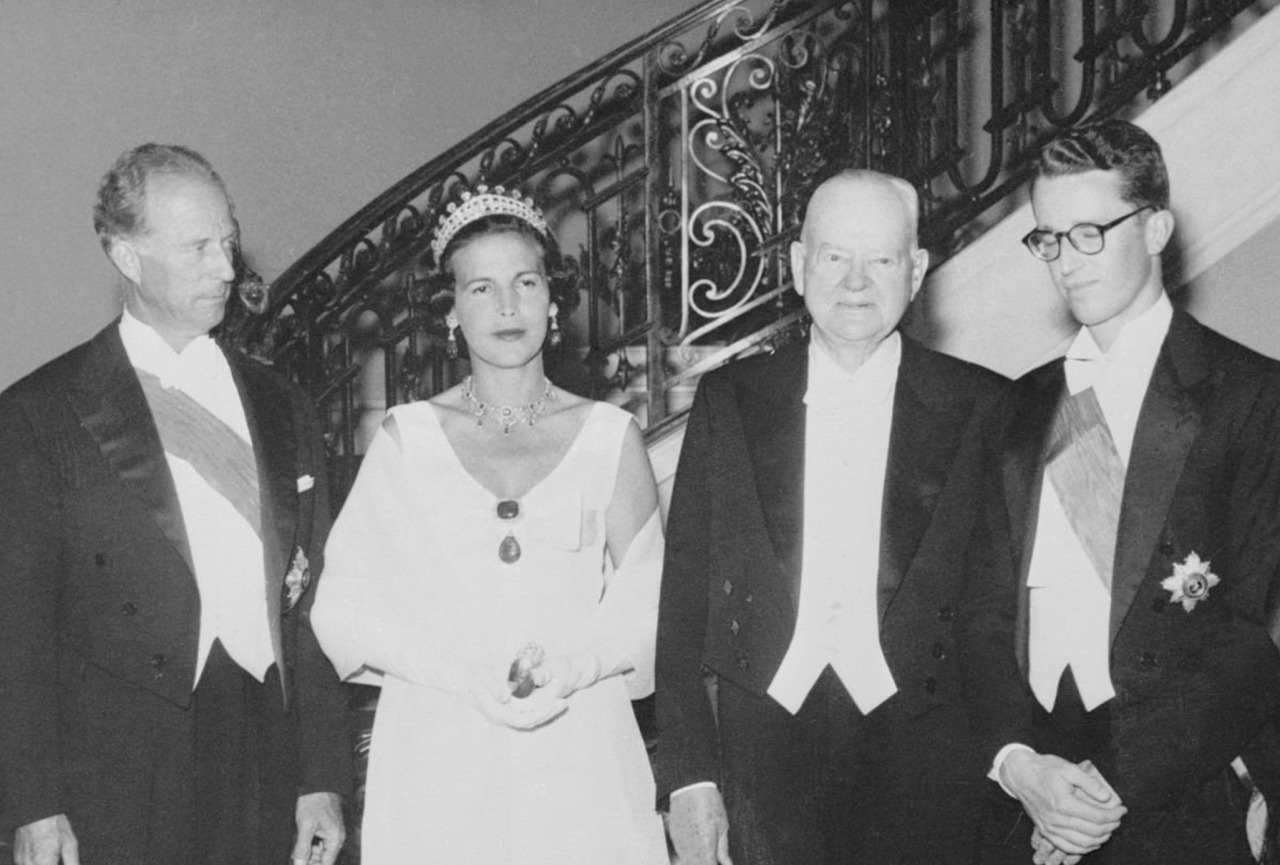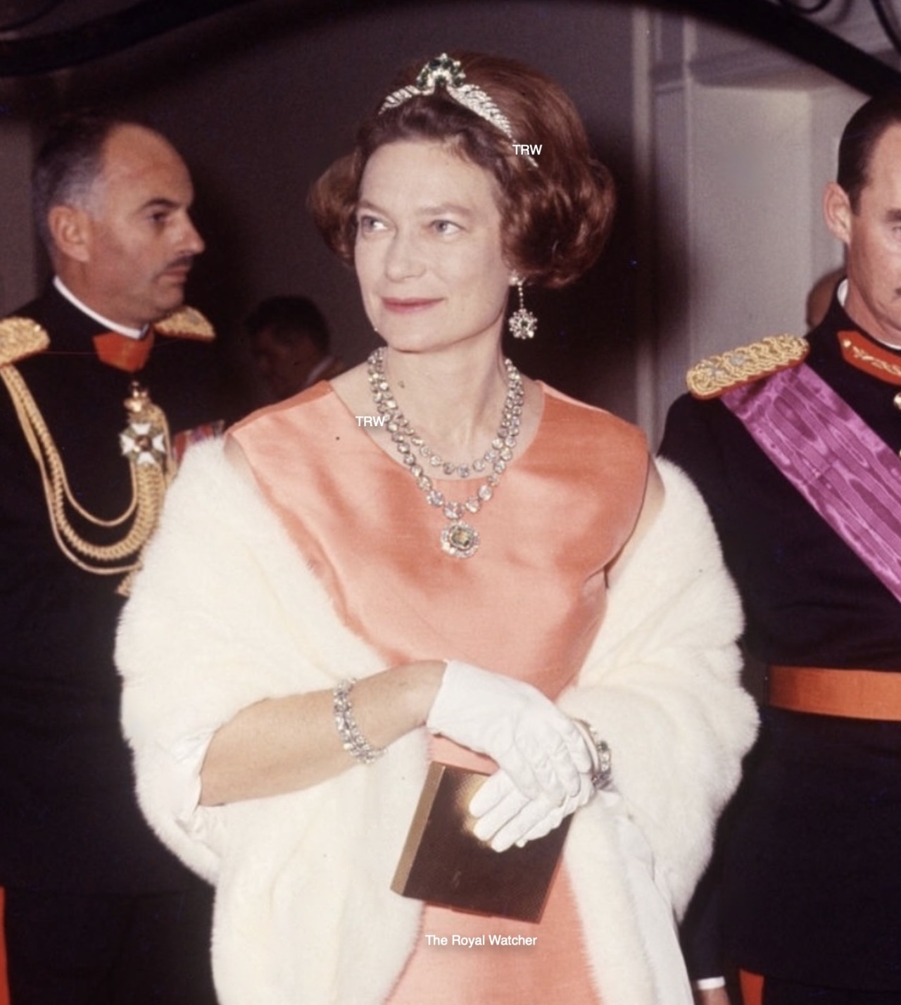 The Princess de Réthy also wore the Emerald and Diamond Necklace for portraits in the early 1950s, as well as with the Art Deco Bandeau Tiara and Queen Astrid’s Emerald Brooch and Earrings for a Banquet at the American Embassy in Brussels in 1958. The Emerald Necklace/Tiara has not been seen since the late 1950s and it is unlikely that it continues to exist, having likely been broken up or discreetly sold off by the Princess de Réthy.